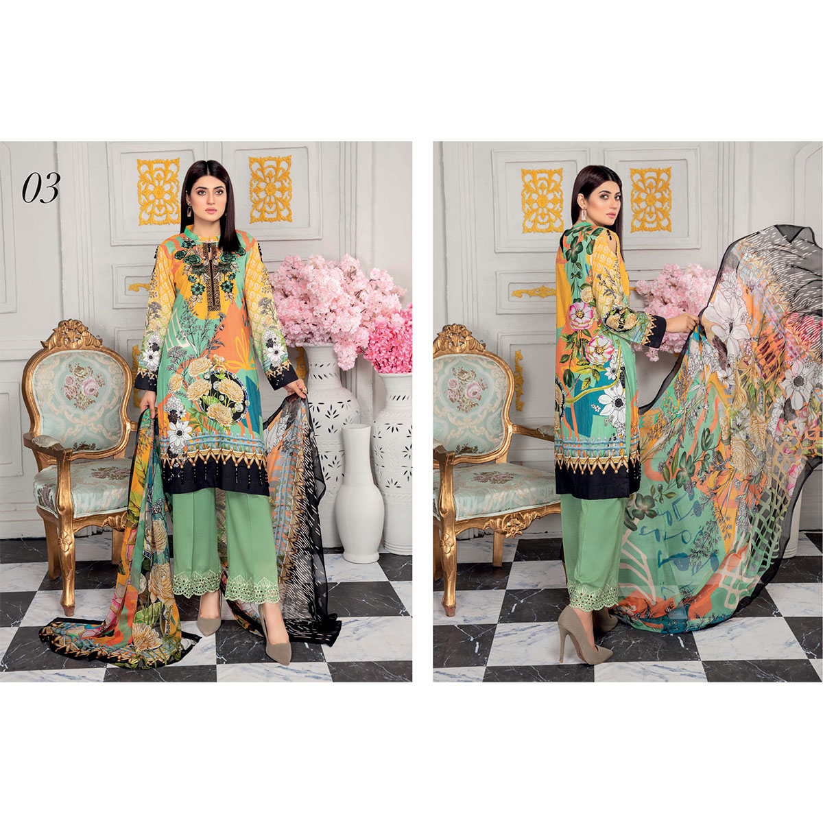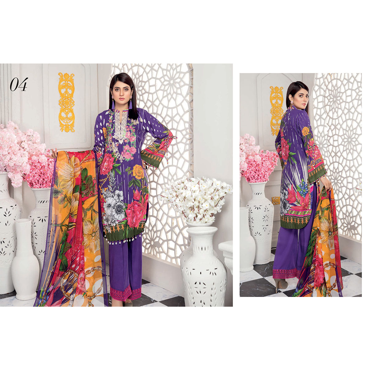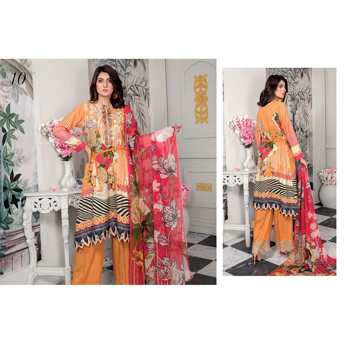 Azwa Digital Printed & Embroidered Suvic with Chiffon Dupatta Collection by ZEBAISH (Per Set-10 Suits)