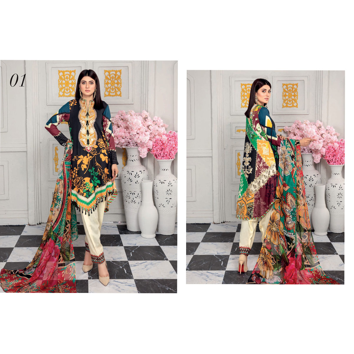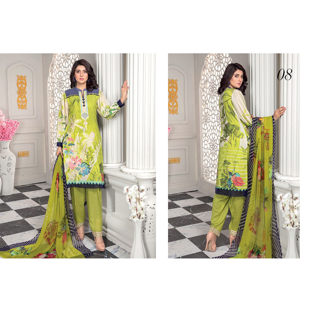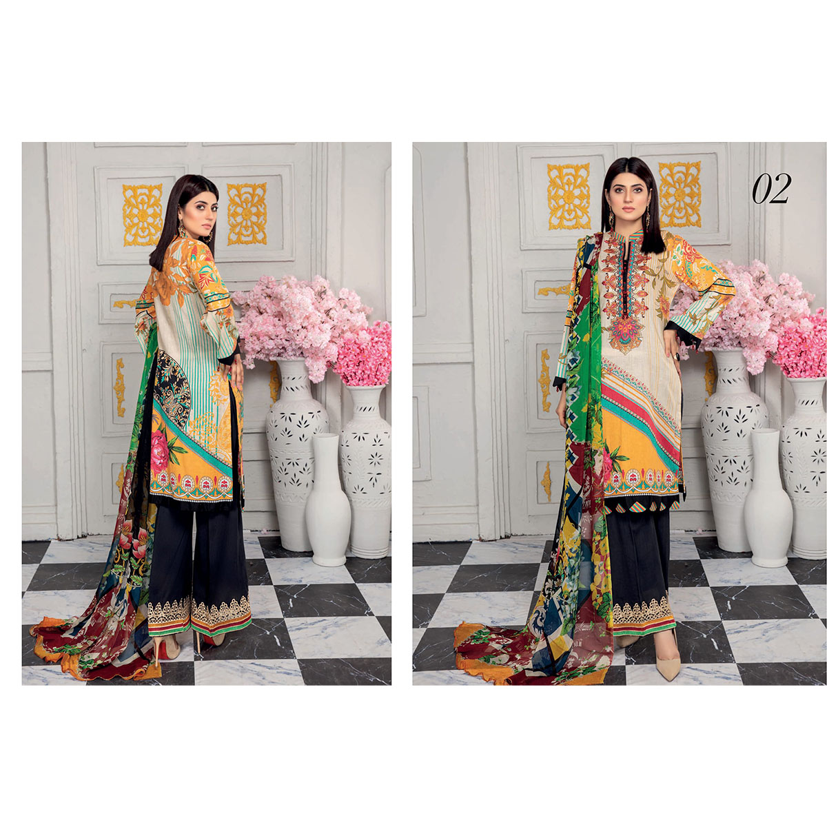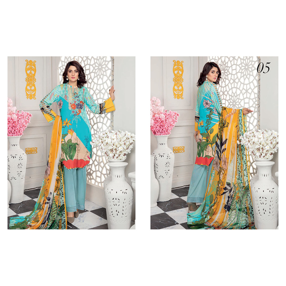 Azwa Digital Printed & Embroidered Suvic with Chiffon Dupatta Collection by ZEBAISH (Per Set-10 Suits)