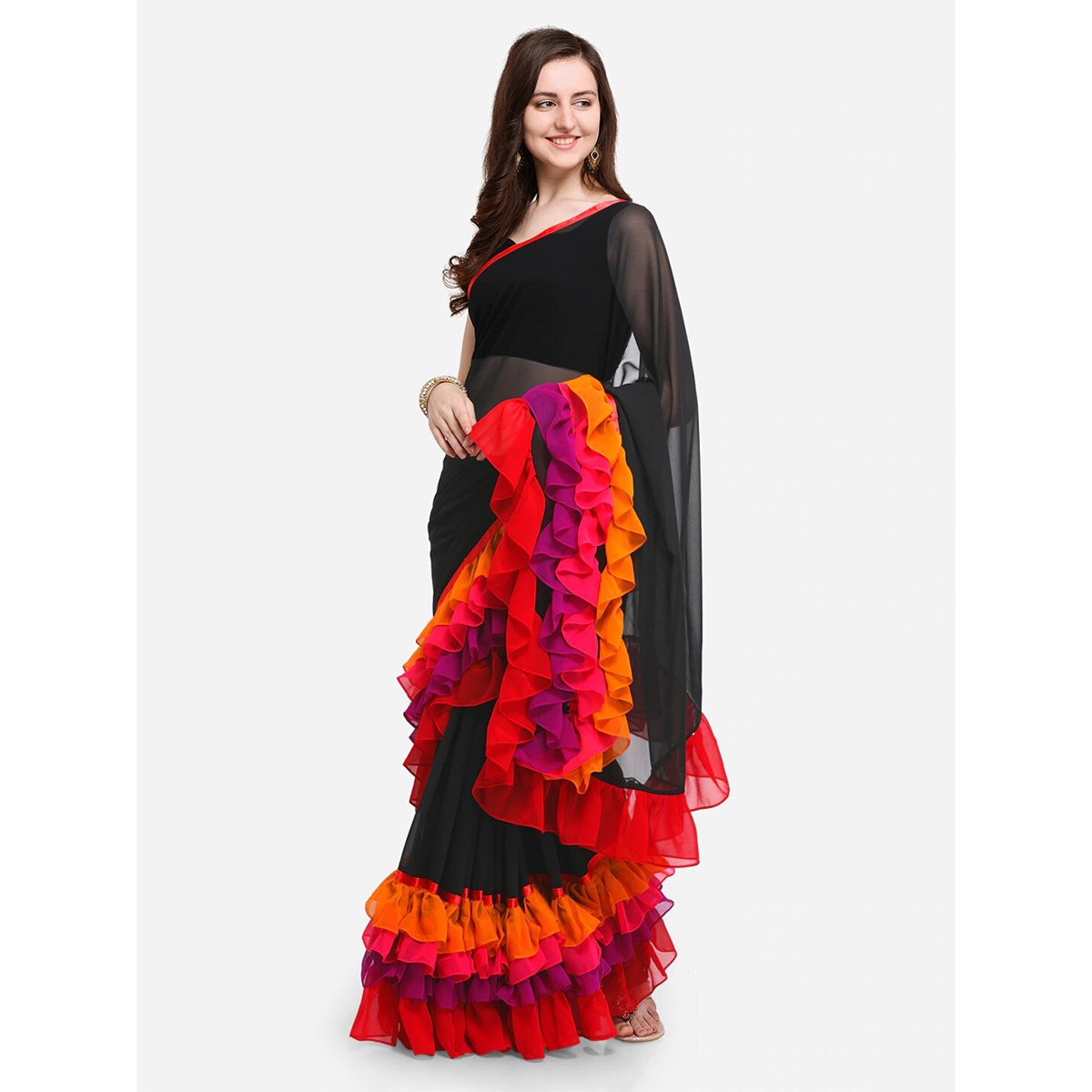Saree is a very common dress in this subcontinental area like Bangladesh. This saree is made of georgette fabrics and also including a matching blouse piece. It is also extremely versatile as it can be successfully incorporated into any look. It is one of the most popular wears for different festivals and weddings occasion. Women look very gorgeous in colorful saree, and so they love to wear and have luxurious and colorful saree for different social and cultural functions. It will keep you looking and feeling good all day long. From the young lady to an elderly person every woman is fascinated about saree just because of our culture.