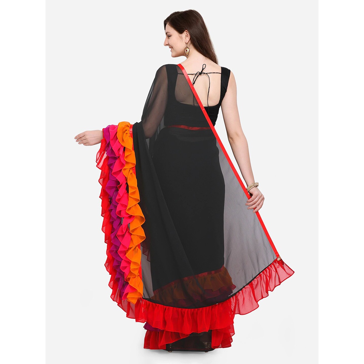 Indian Soft Weightless Georgette Saree (Black & Red) With Matching Blouse Piece for Women
