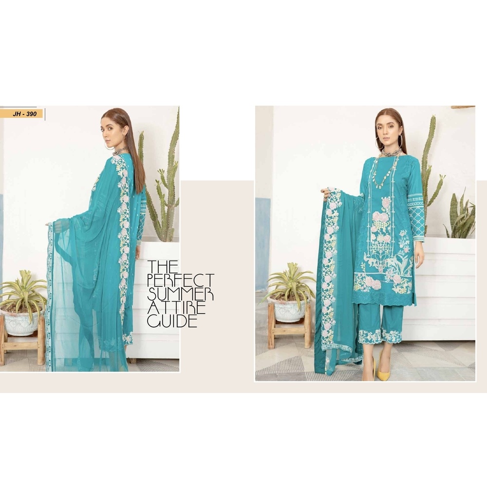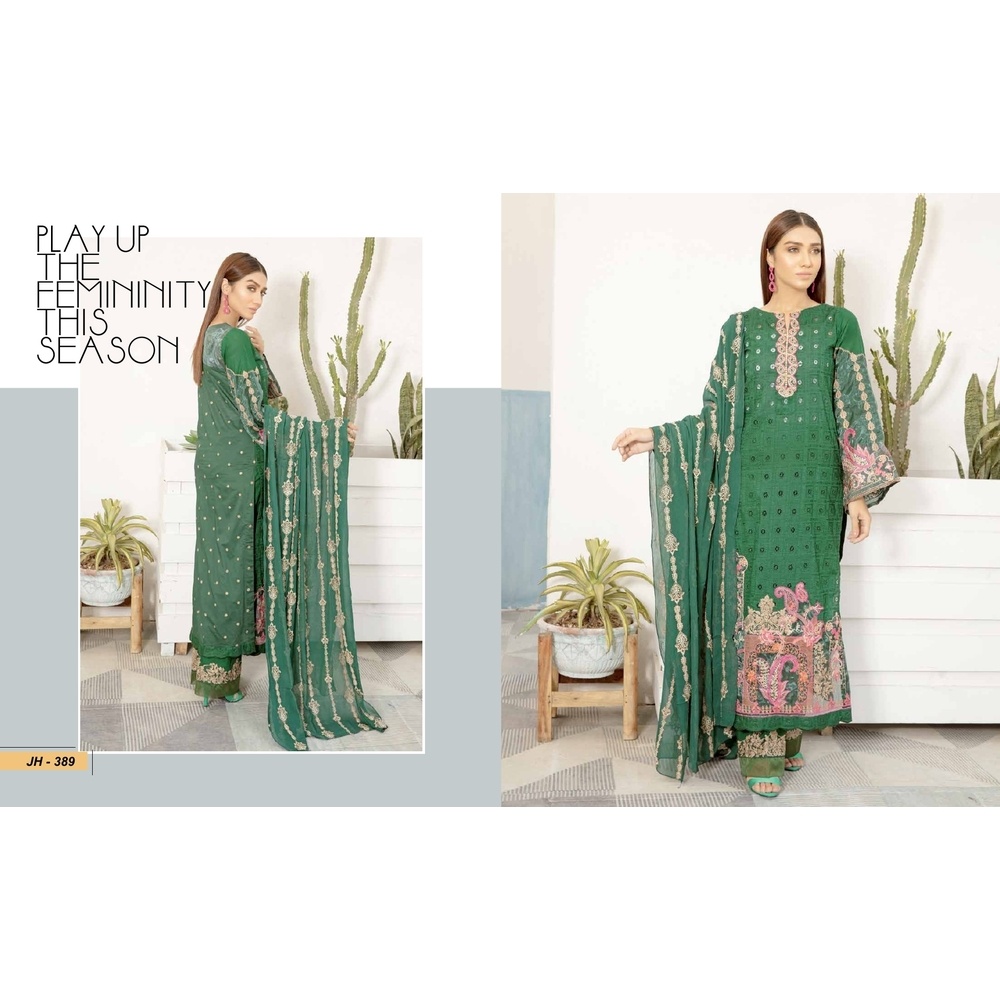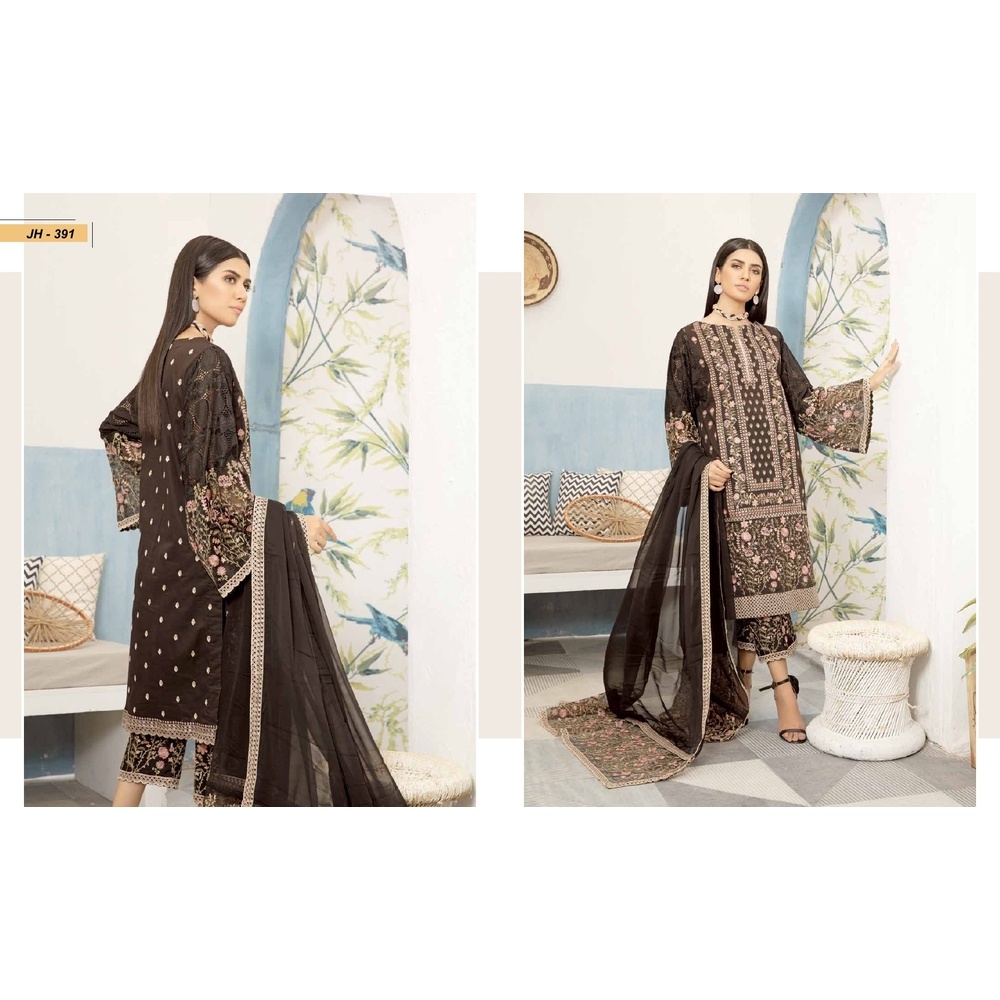 Johra Rosa, Embroidered Shirt with Embroidered Chiffon Dupatta.