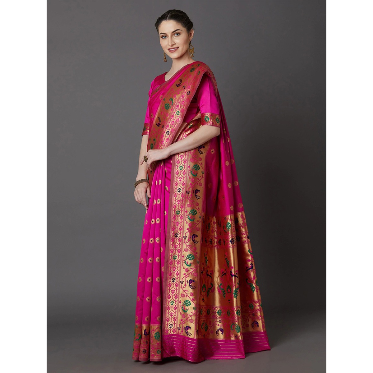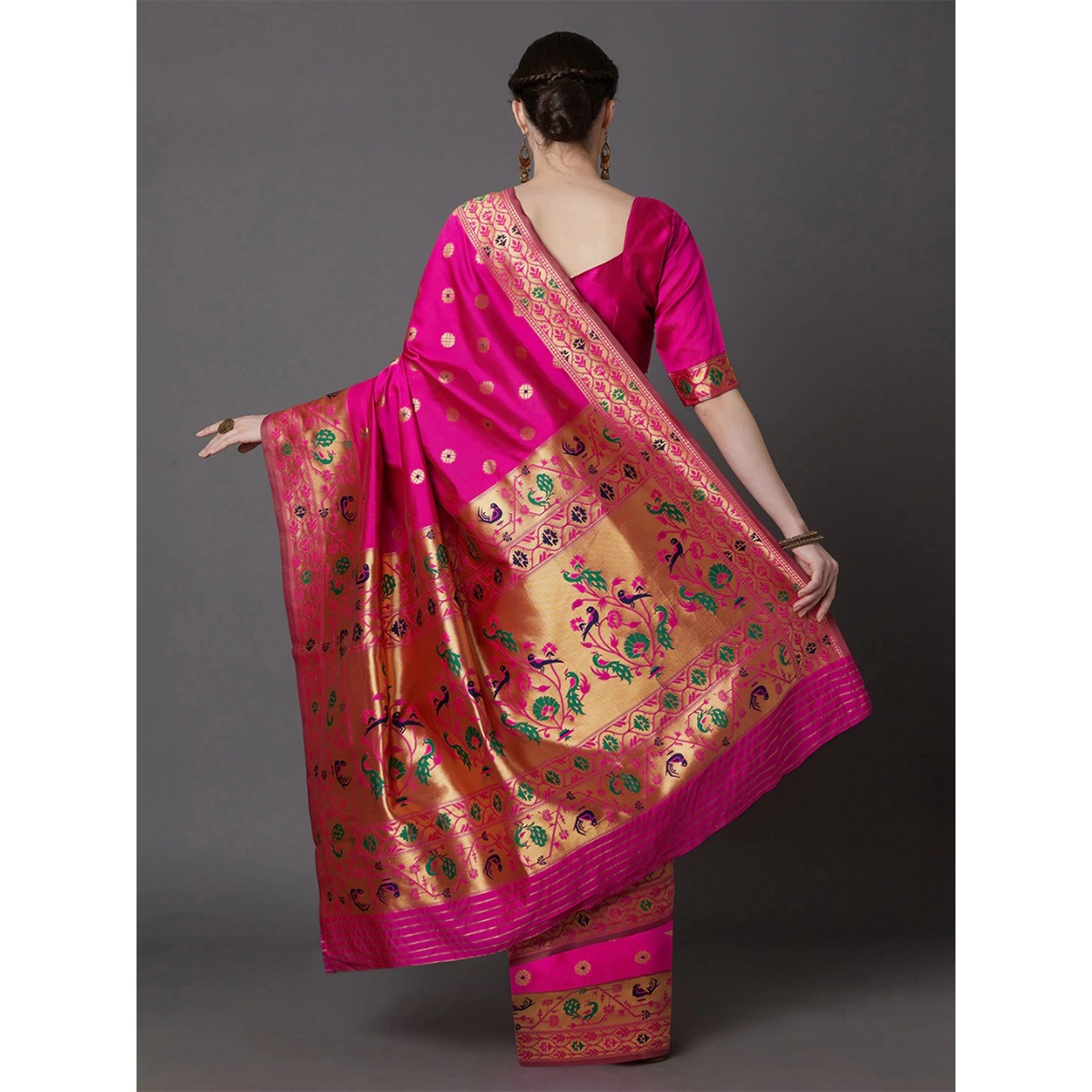 Latest Designed Luxury Exclusive Printed Silk Saree (Magenta with Green) With Blouse Piece For Women