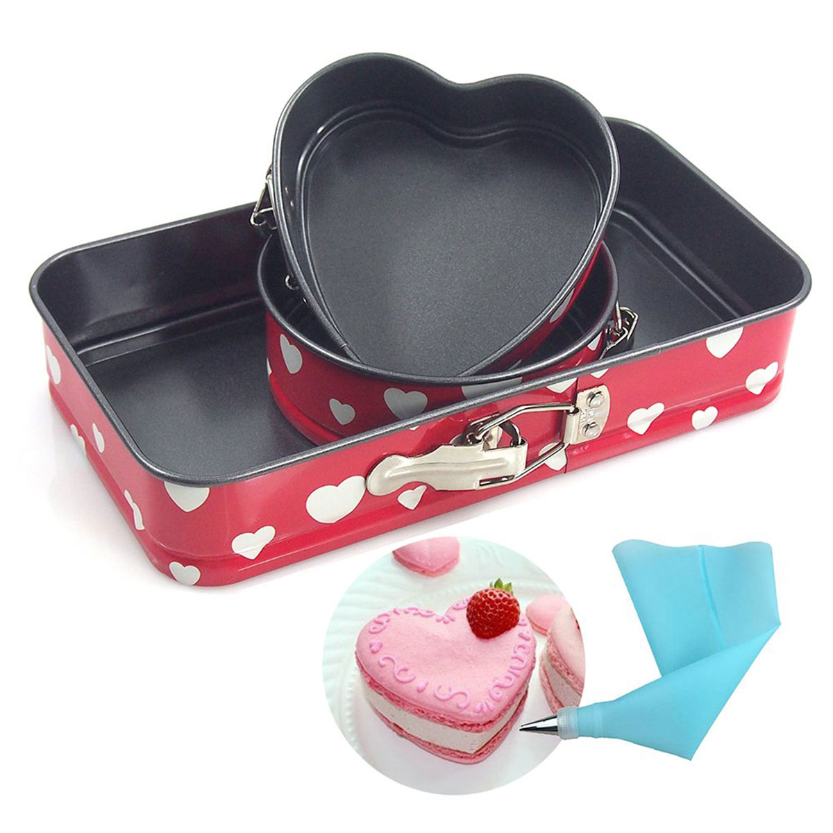 The Blueridge Bake ware round Shape cake oven for baking and accessories aluminum with Teflon coating ensures that the cooking process is efficient and even. Use only silicone, nylon or wooden tools and do not cut in the pan or use sharp metal utensils. You may only hand wash with warm water and mild detergent using a sponge or nylon pad and remember to wash before the first use. Package Contain: 3pcs cake molds for cooker and oven. The cake can be made in different molds, you can become professional baker at home with this unique cake molds.