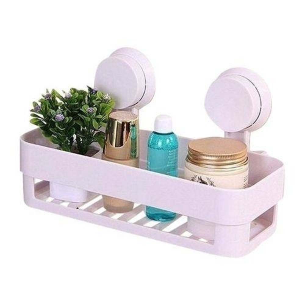 The corner shelf is designed for the square corner. The porous body allows water to drain out Perfect for cosmetic, bath products and other small household items. Mount on a smooth and polished surface like Ceramic tile, glass and mirror New designed With two suction cups, stick tight and strong Perfect suction cup solution for kinds of smooth and non-smooth wall, such as gritty, stainless steel, tile, smooth glass, paint wood, emulsion varnish, archaized brick, ground glass etc.
