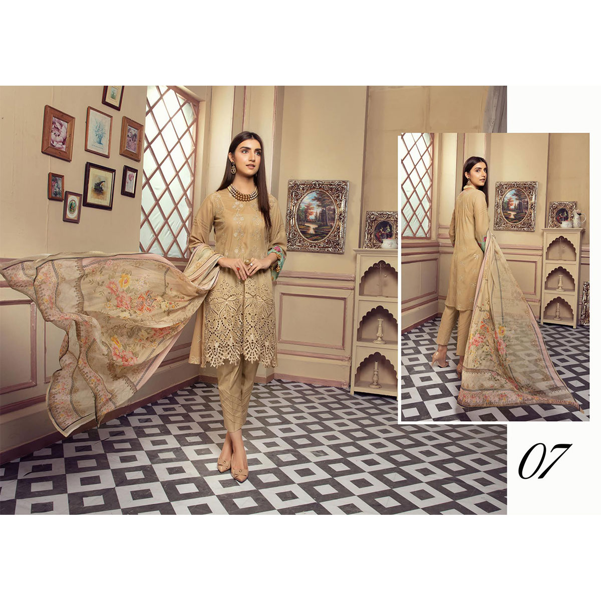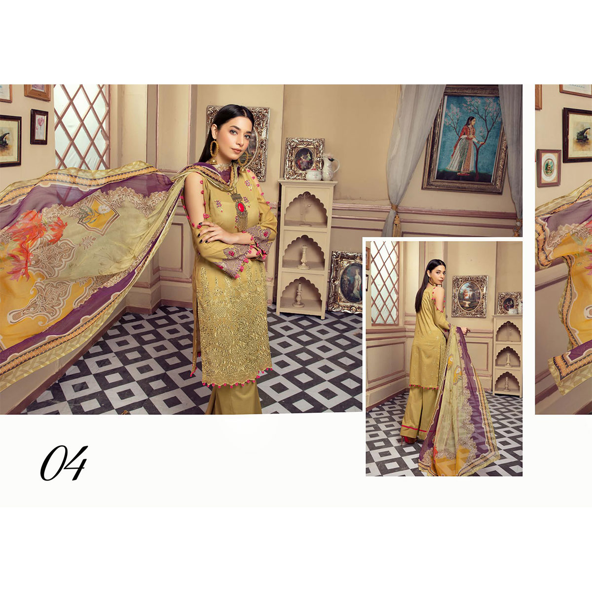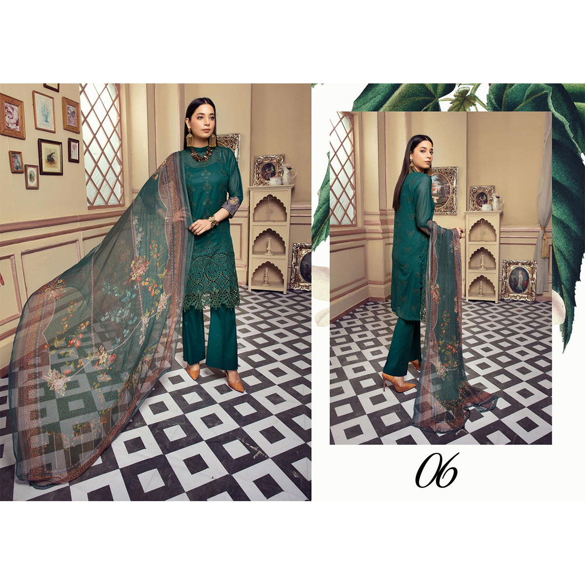 Blossom Embroidered Swiss Lawn With Printed Crinkle Dupatta By Riaz Arts – Per Set -10 Suit