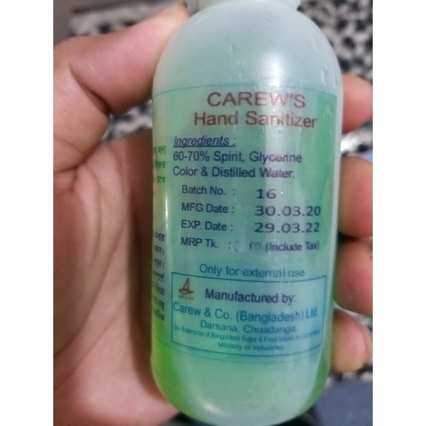 উপকরণ: 60-70% স্পিরিট, গ্লিসারিন রঙ এবং পাতিত জল