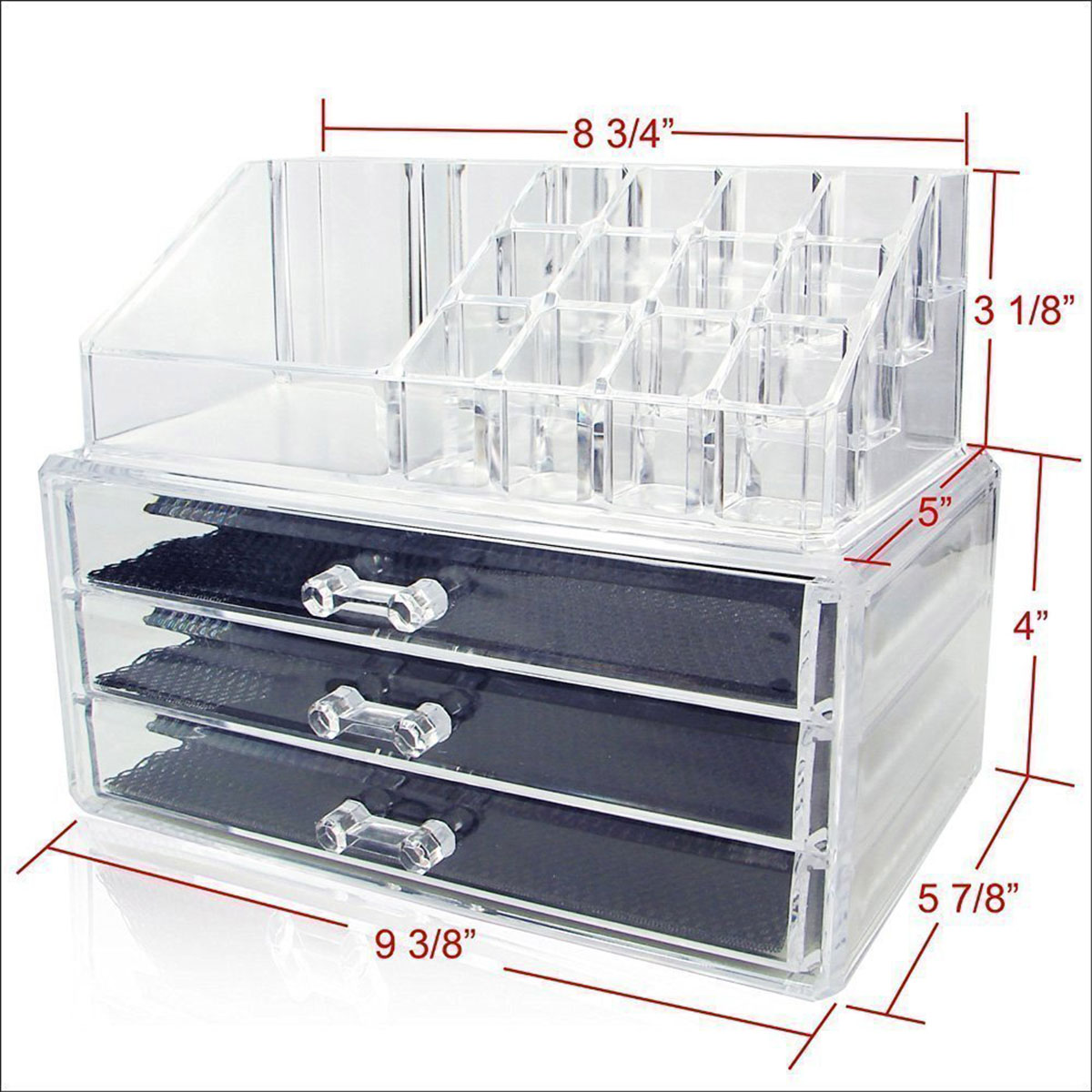 It perfectly organizes and stores your cosmetics, including lipsticks, nail polish, makeup brushes, eyebrow pencils, skin care products, makeup eggs, necklaces, rings and more. This unique product accommodates all of your cosmetics and accessories in a single organizer that takes up very little space. The cosmetic organizer saves you counter space, ensuring you won't be troubled by messy cosmetics scattered on your vanity table anymore!