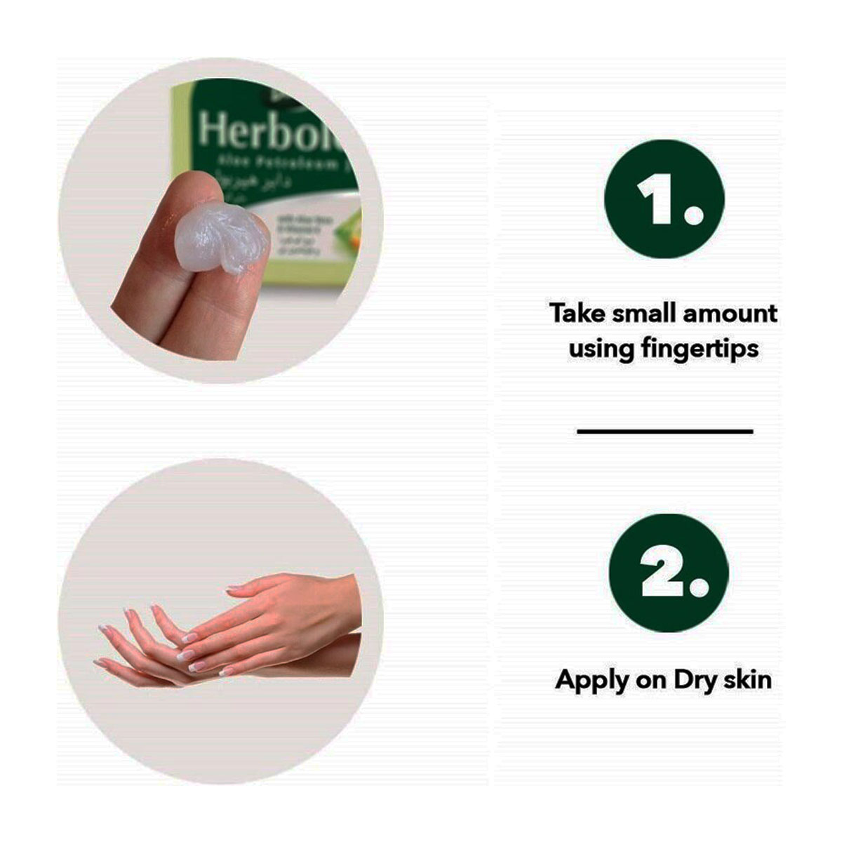 Dabur Herbolene Petroleum jelly contains Aloe Vera & Vitamin E. Aloe is good for softening the skin and adding glow to it. Whereas vitamin E provides nourishment to the skin.