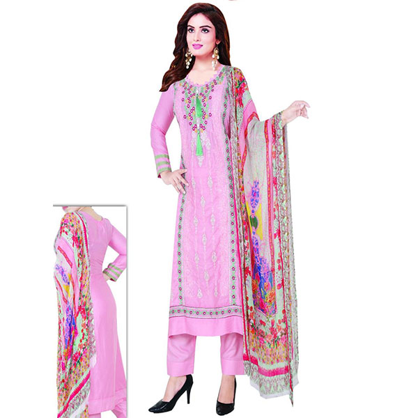 Embroidered Cotton Body Embroidered Digital Print Dupatta 3pc in wholesale price