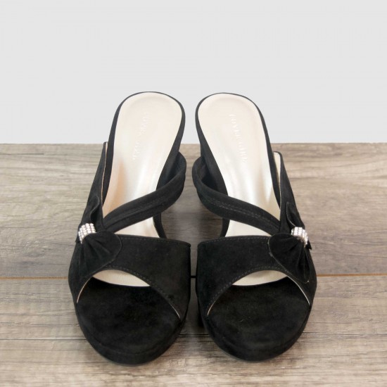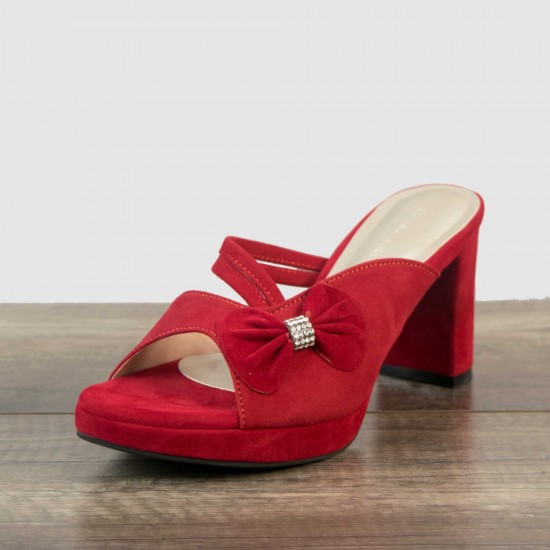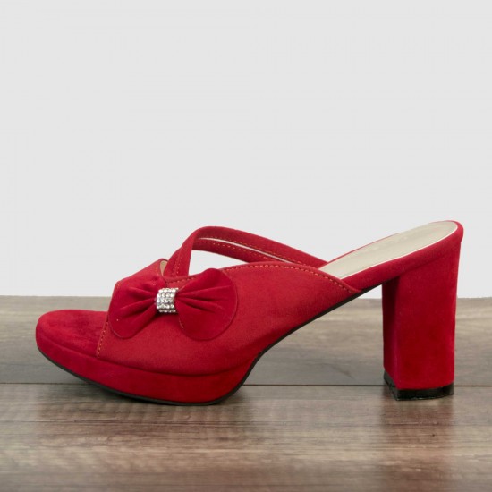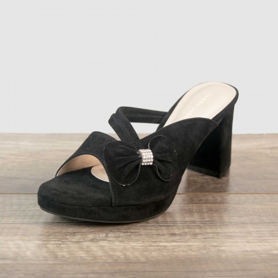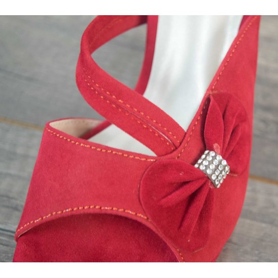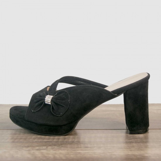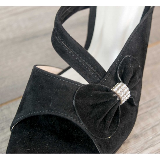 Velvet bow at one side with stones in its middle