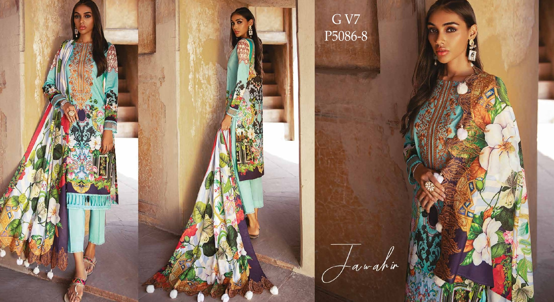 • Shawl: Digital Luxury Lawn Shawl with Embroidery on Pallo (2.5M).