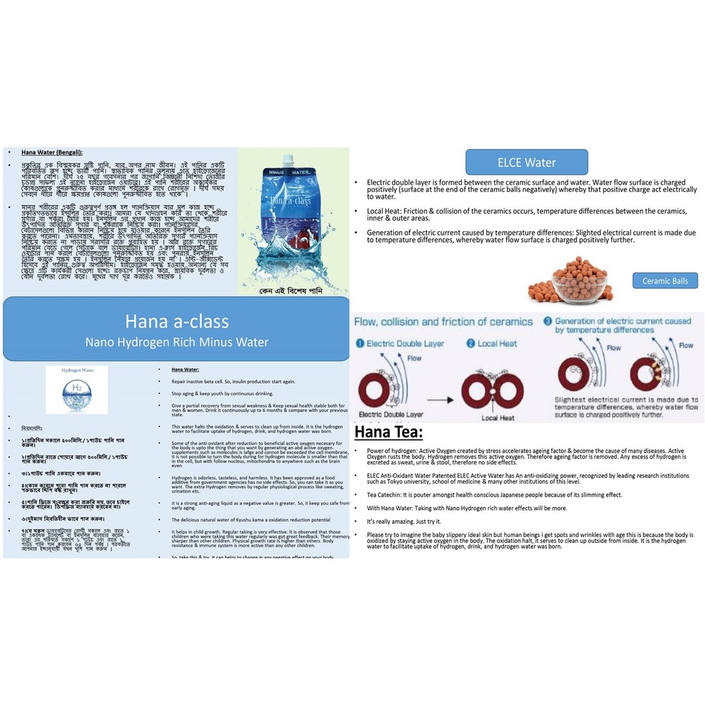 Hana Hydrogen Green Tea is produced with natural green tea and Hana a-class water of which has indeed anti-oxidation function in human body. The water includes rich hydrogen radical and reduce active oxygens in human metabolism.