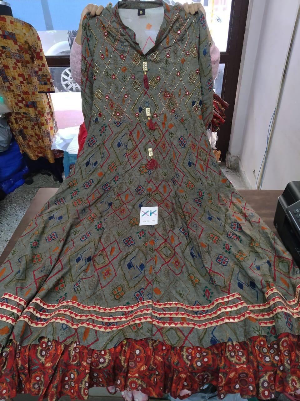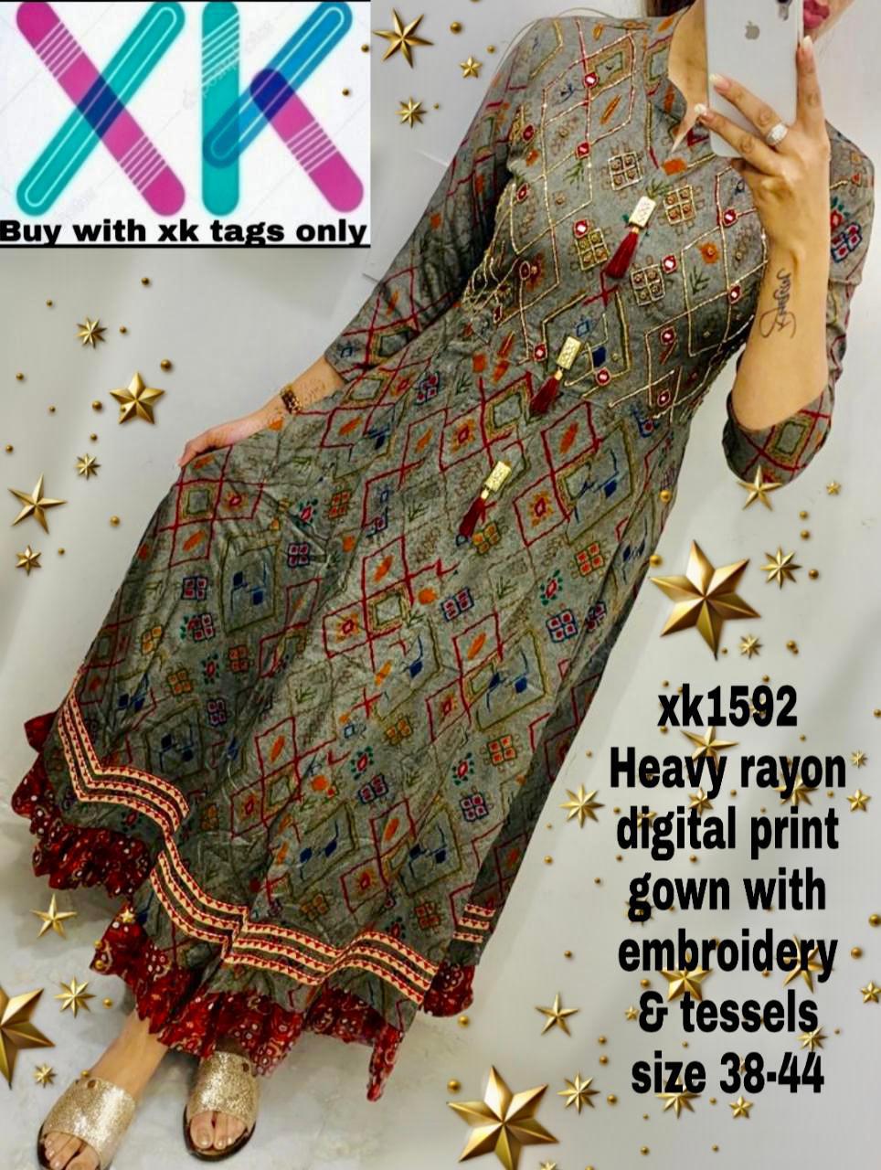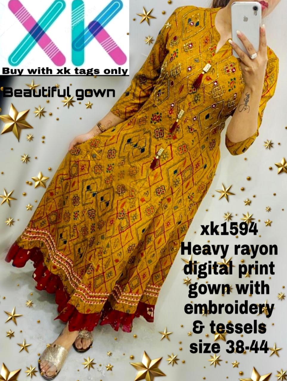 Heavy rayon digital print gown with embroidery and teasels Product Details: