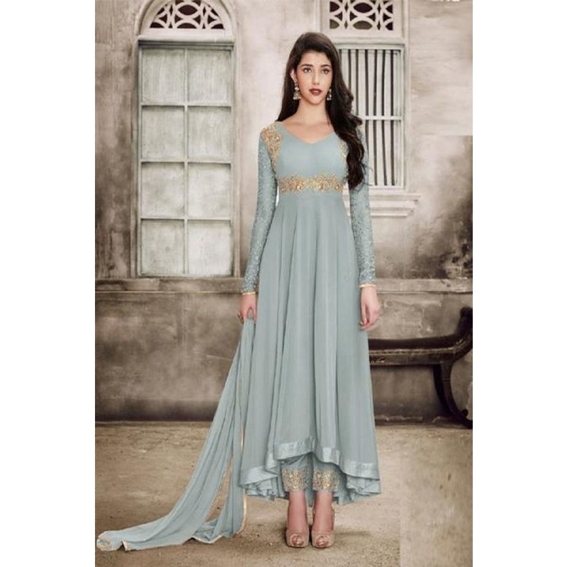 High Quality Light Ash Fabric’s Heavy Embroidery Work Semi-stitched Georgette Three Piece (salwar kameez) for women.