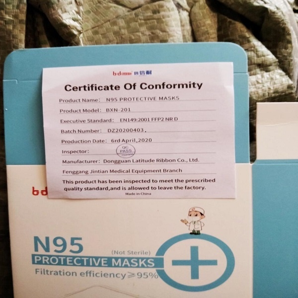 KN95 Mask, Made in China. 3500 Pcs. BDT 25 per Pcs. Certified by FDA ,Certified by ICR ,Certified by TLC ,Picture of all Evidence are given in Gallery.KN95 masks are made from multiple layers of synthetic material .its designed to be worn over the mouth and nose. Straps behind your ear .