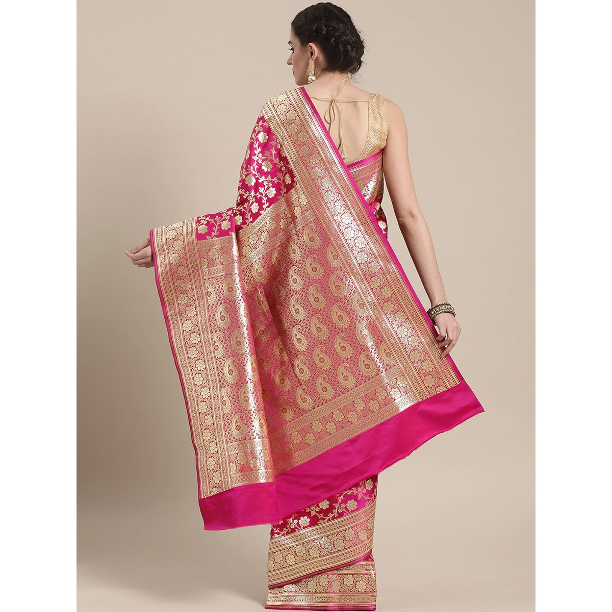 Latest Designed Luxury Exclusive Printed Katan Silk Saree (Pink) With Blouse Piece For Women