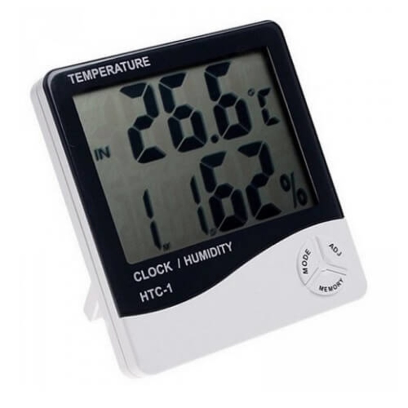 HTC-1 Temperature Humidity Meter Digital Hygrometer (-50° to +70°C) Key Features of HTC-1 : Multi-functional indoor thermo-hygrometer with clock. Memory to store/recall the max /min temperature & humidity. Temperature display in °C or °F. Calendar & everyday alarm clock, Hours announcer, 12/24 hour time format Built-in sensor for indoor use.