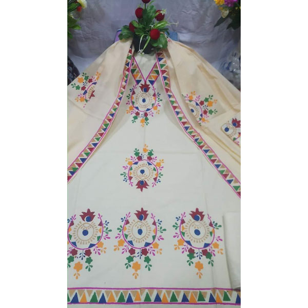 Modern Three Piece for Women is associated with cotton fabric. It will hang on your body, provide comfort while wearing and helps express yourself in so many ways. It is perfect and suitable for all traditional occasions.