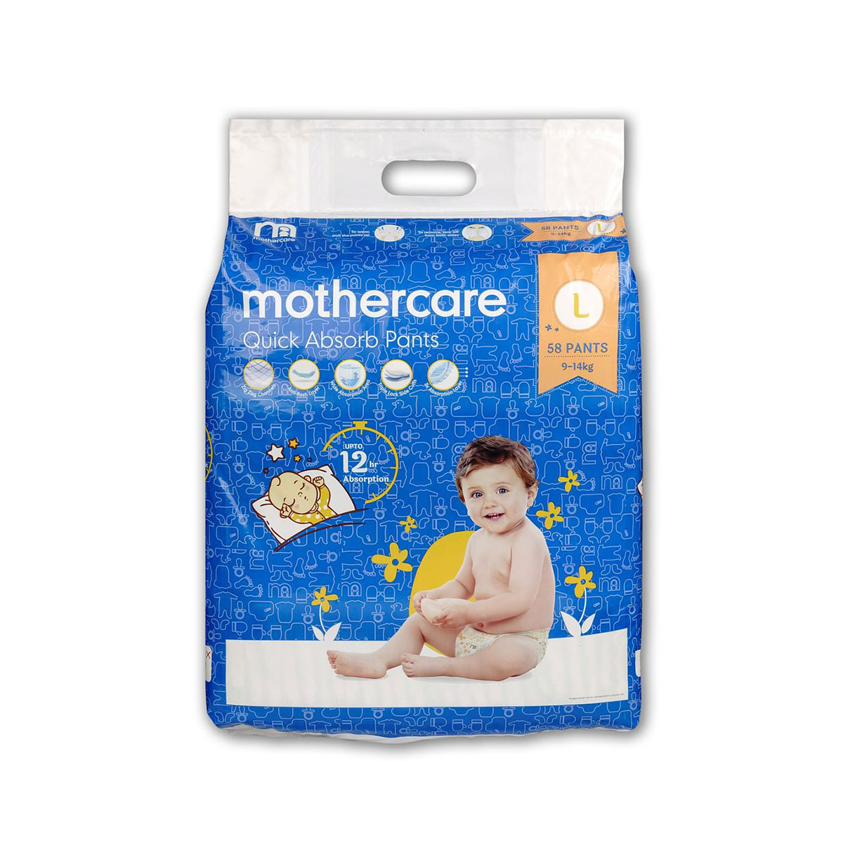 Baby deserves the best care! Mothercare Quick Absorb style diapers are designed with absorption layer & zig zag channels which helps in equal distribution of wetness & faster absorption. The anti-rash soft layer is gentle on baby’s skin keeping them irritation free & happy. Triple lock side cuffs locks the wetness & prevents leakage. Mothercare diaper provides up to 12* hours of absorption for comfy nights & happy mornings.