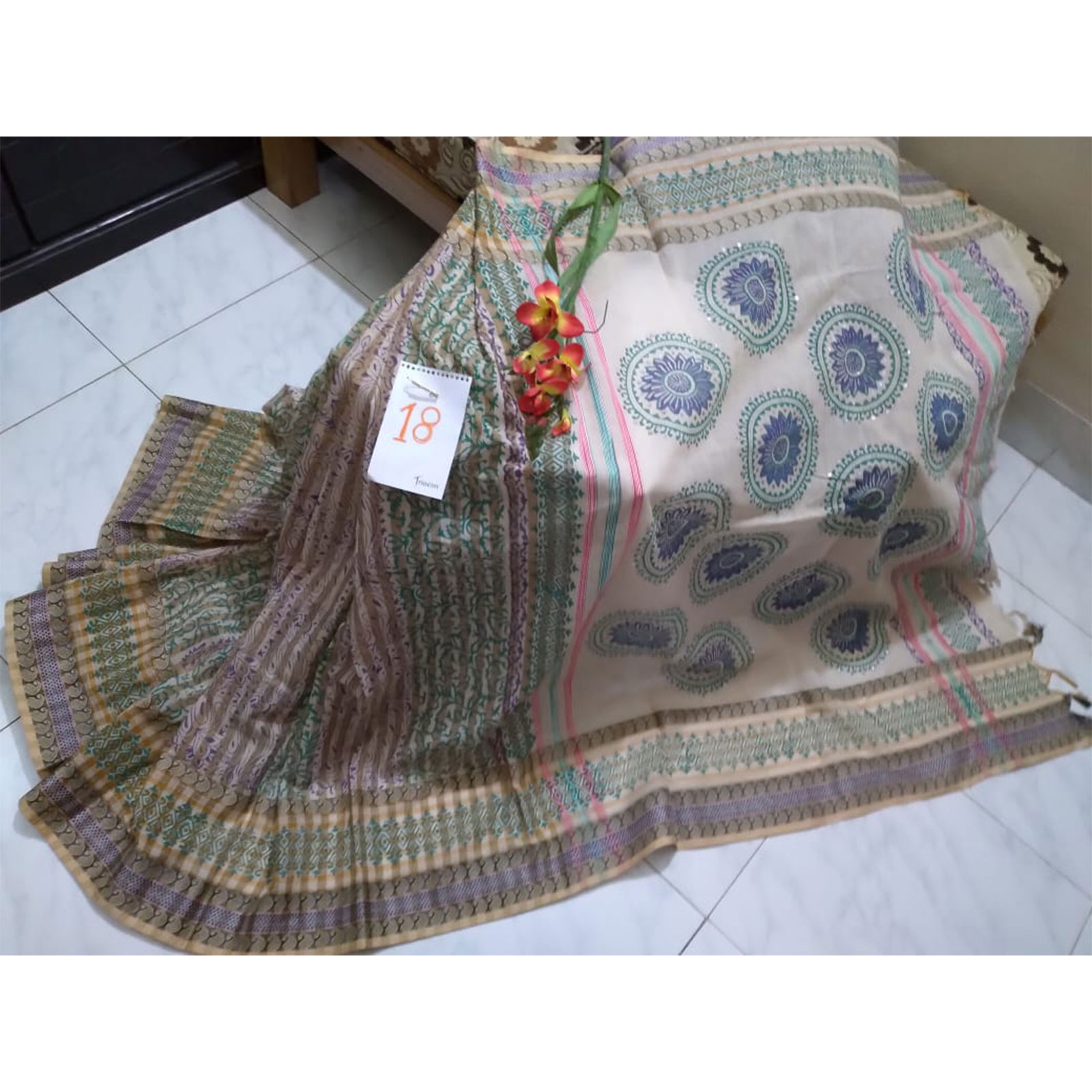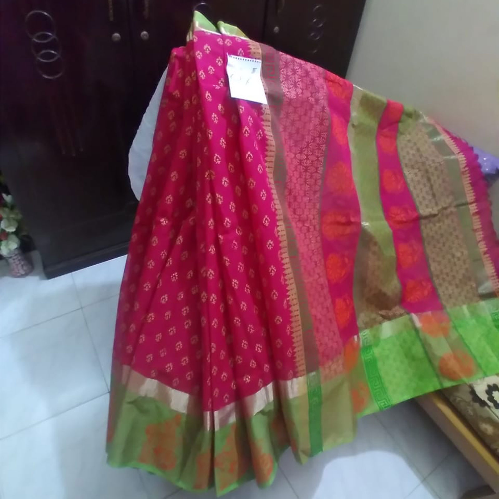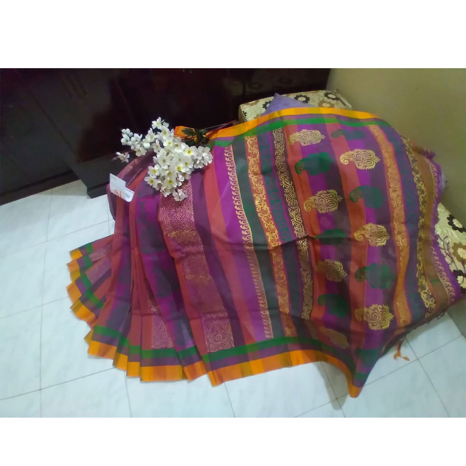A sari consists of one very long piece of fabric that's wrapped around the body and draped over a shoulder, and garments are worn underneath, including a short-sleeved blouse. The style and fabric of a sari, as well as the way it's worn, varies between different regions and traditions. You can also spell the word saree.