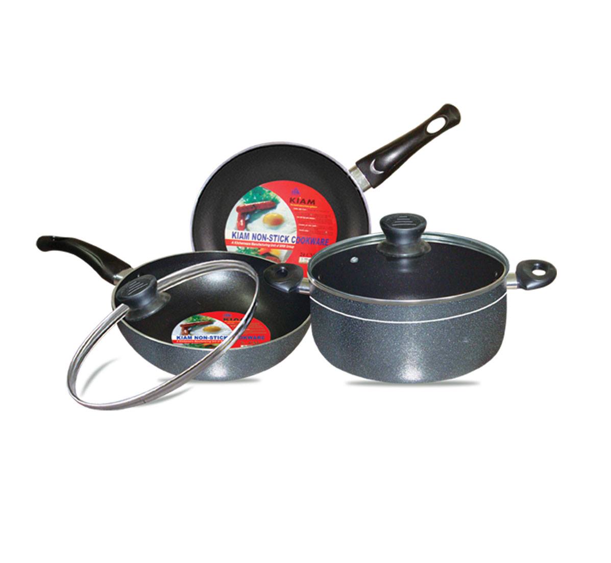 24 cm Casserole with Glass Lid+24 cm Karai with Glass lid+24 cm Fry pan Tapper