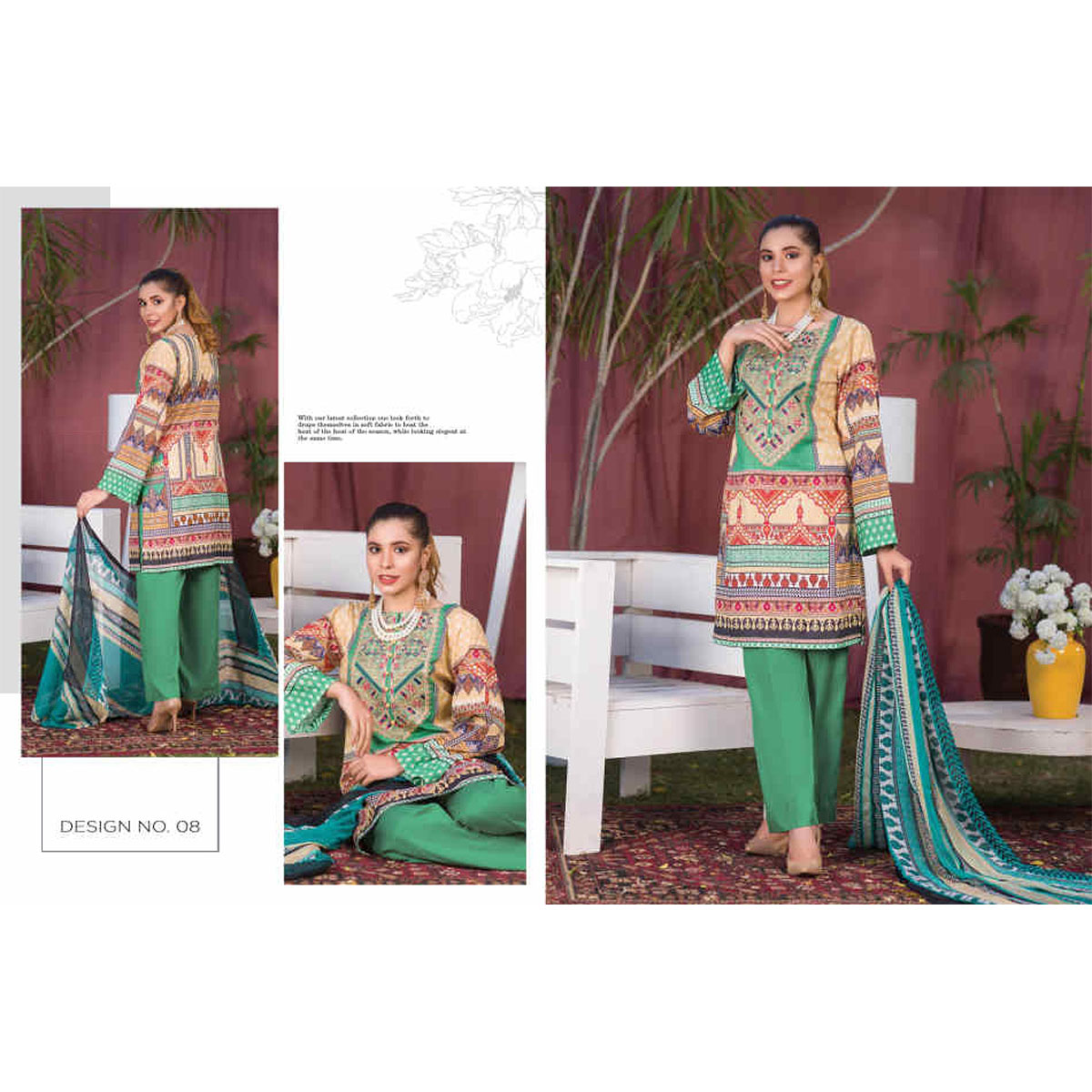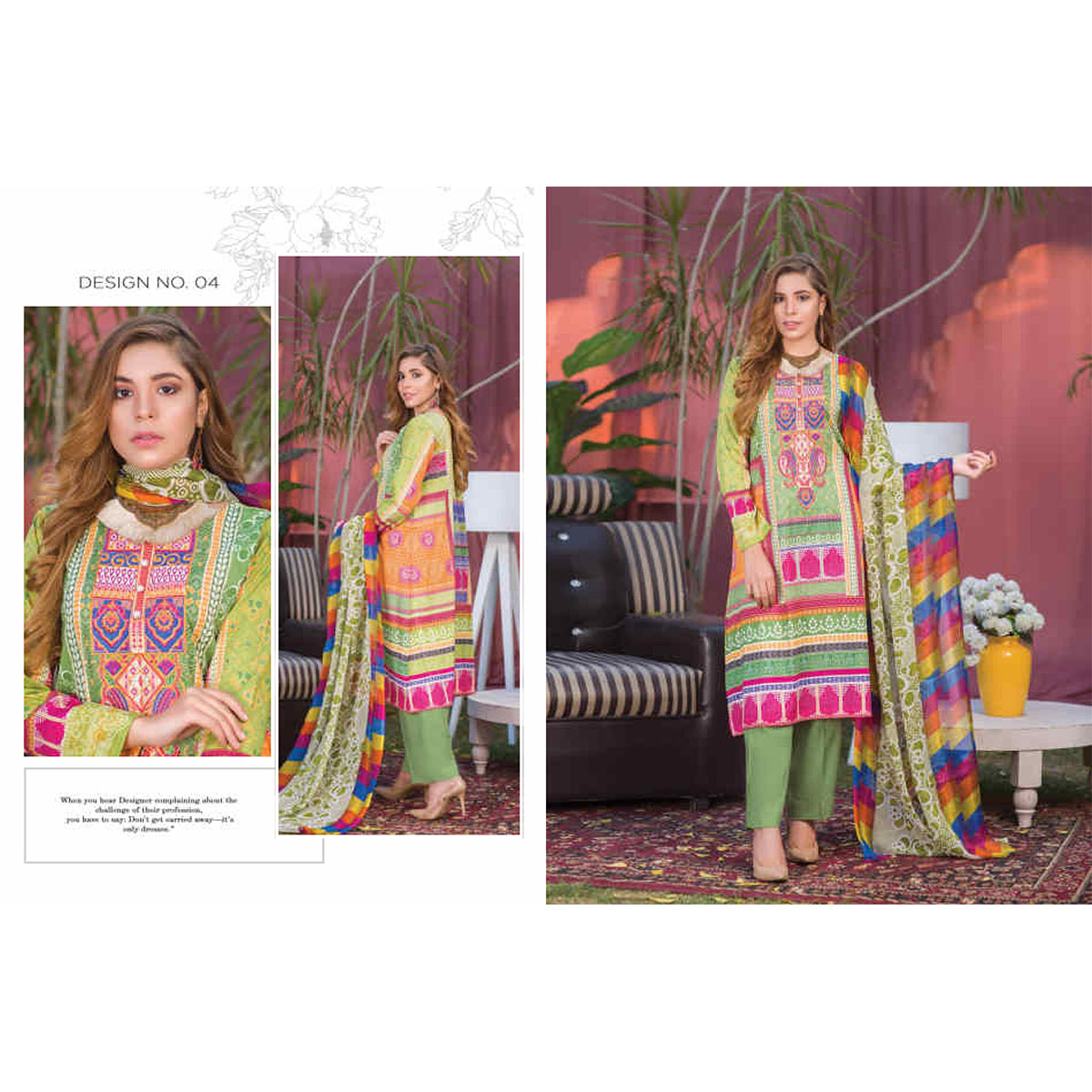 Pakistani lawns perfect for the young and smart person which can be worn for any occasion. This Product is made of good qualities fabrics. Women look very gorgeous in colorful dress, and so they love to wear and have a colorful dress for different social and cultural functions. It will keep you looking and feeling good all day.