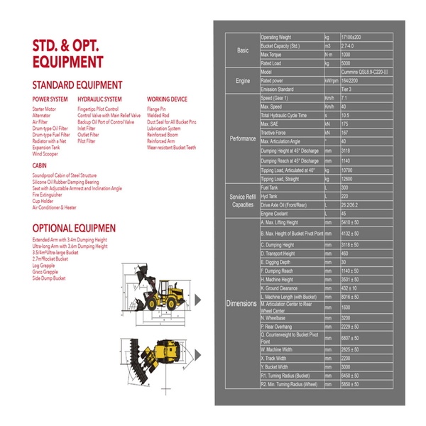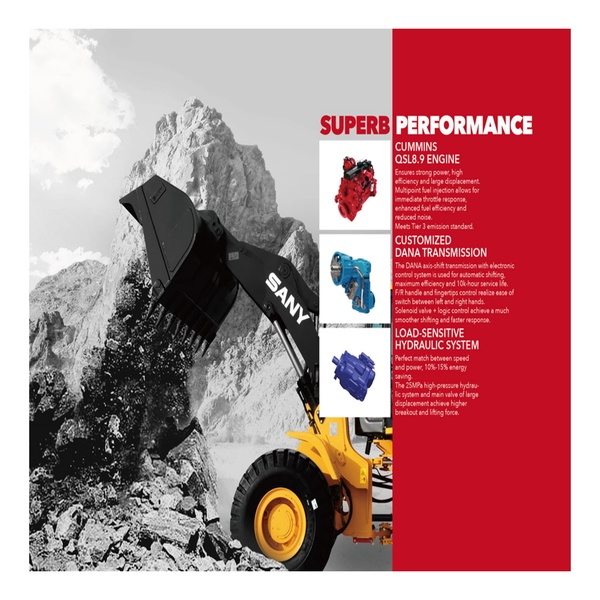 LOAD-SENSITIVE HYDRAULIC SYSTEM: Perfect match between speed and power, 10%-15% energy saving. The 25MPa high-pressure hydraulic system and main valve of large displacement achieve higher breakout and lifting force.
