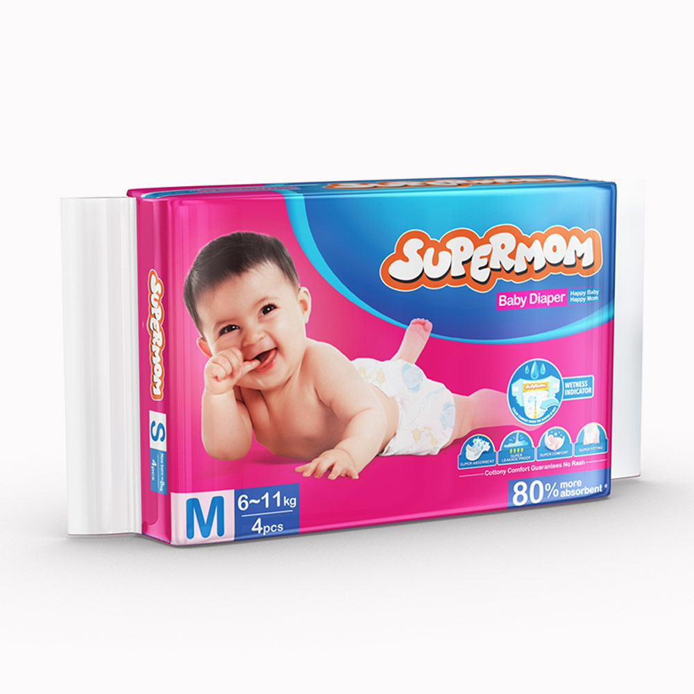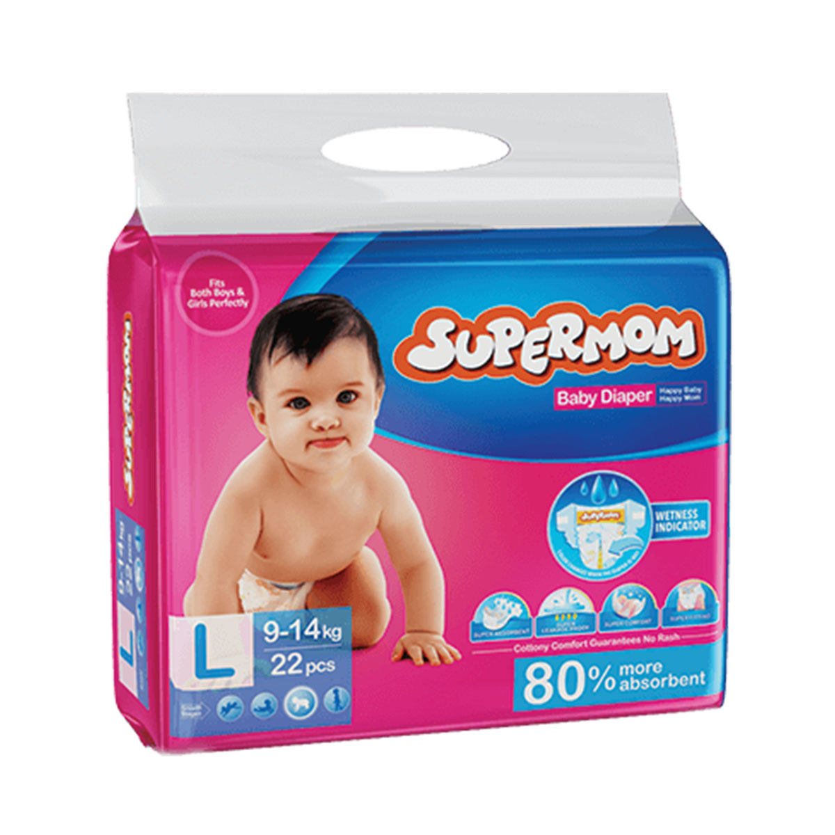 Supermom has everything you could ask for in a diaper. It is 80% more absorbent than regular diapers. It is completely leakage proof, super fitting and the cloudy, cottony top sheet ensures that your baby will be very comfortable.