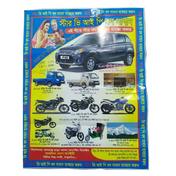 আমাদের সাবান ক্রয় করে জিতে নিন ভিন্ন কেটাগড়িতে বিভিন্ন উপহারঃ এক কাটুন = ৬০ টি ১৭০গ্রাম সাবান ।