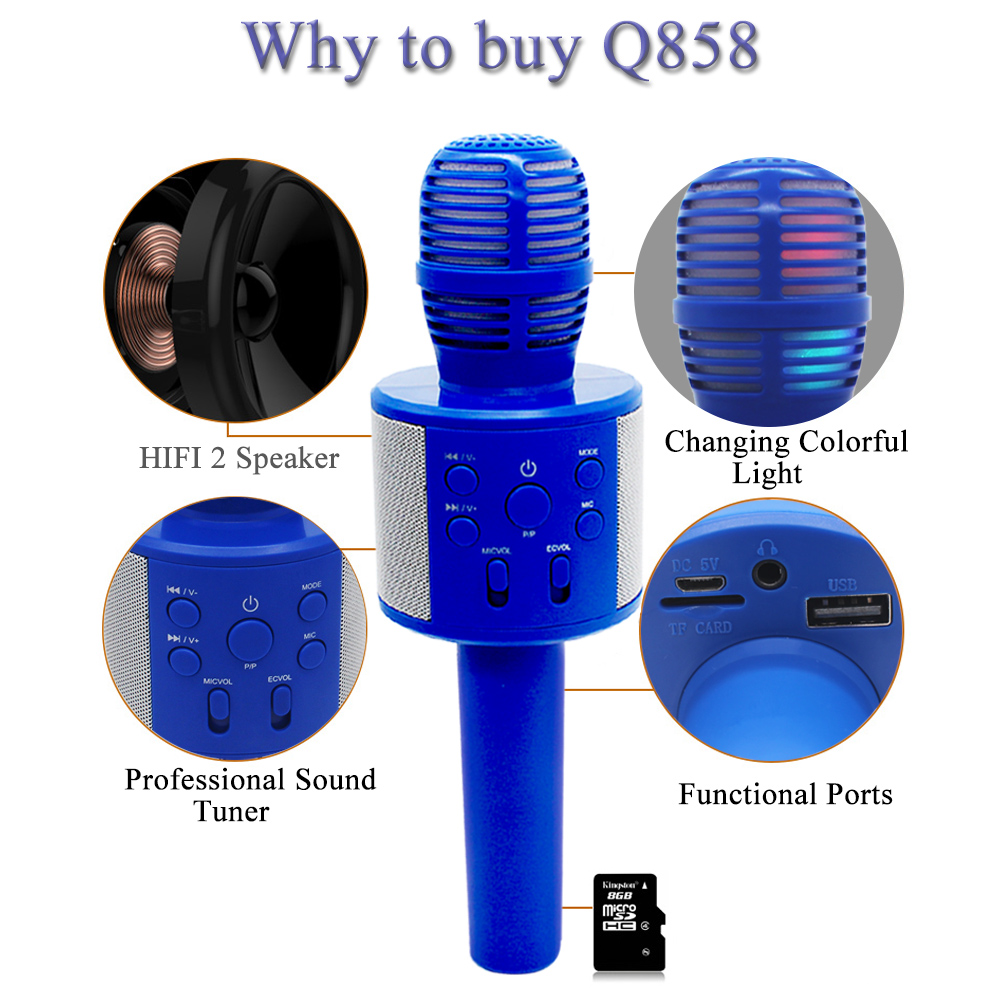 Wireless Karaoke Q858-Bluetooth KTV HIFI Speaker Singing Record meeting Microphone Speaker Echo Mixer Condenser with Mic.