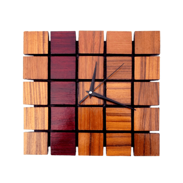 Name: Mini Box ID: HCBT3 Material: Burma Teak Board, Gorjon Ply Board, Quartz Clock Machine Finishing: Natural Hand Polish Size: 11*11 inch Color: as picture Type: Handmade In Box: Clock, Battery, Screw & Royal Plug