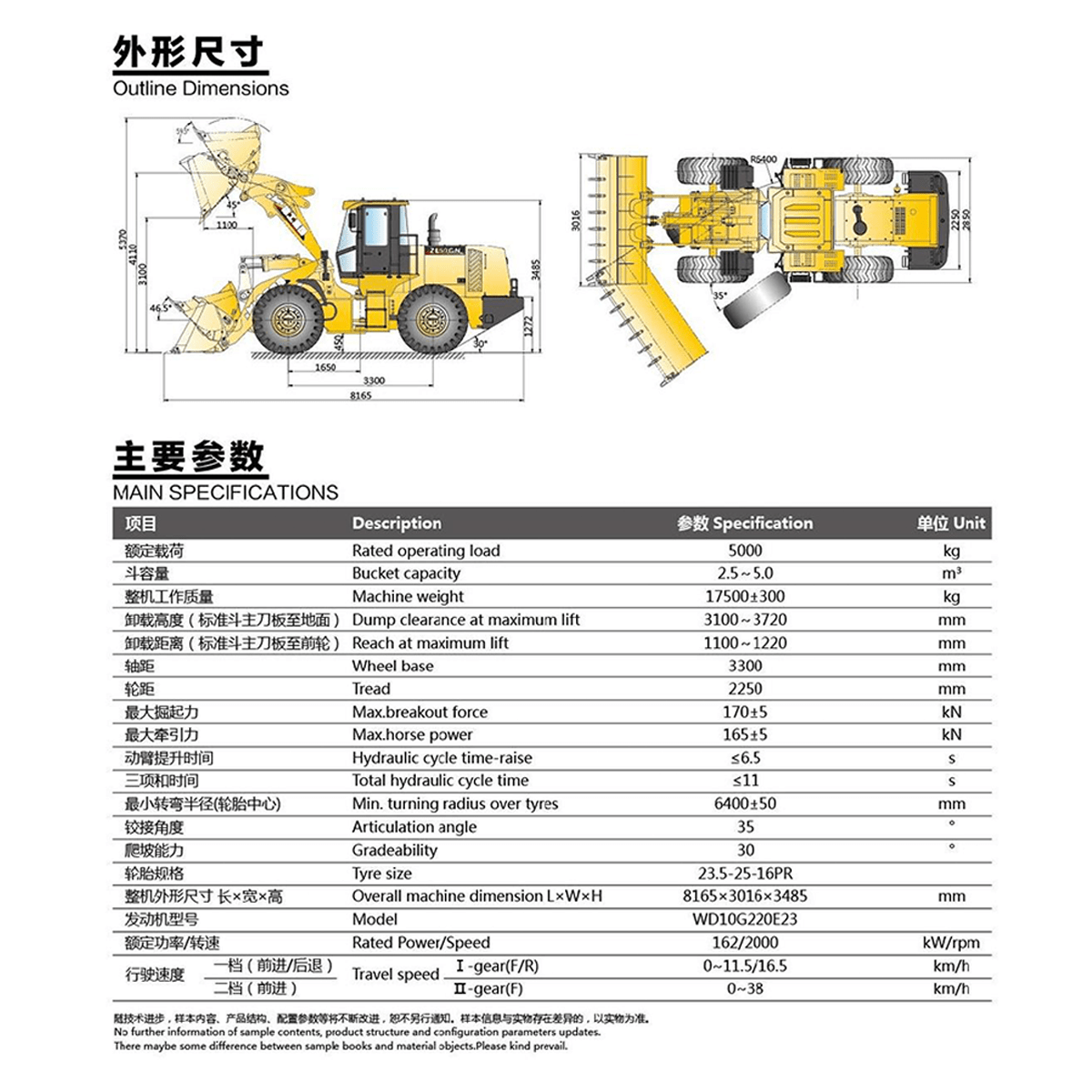 4.160kN breakout force handles all kinds of materials with ease,≥3.5m high dumping capacity handle the severe conditions with ease.