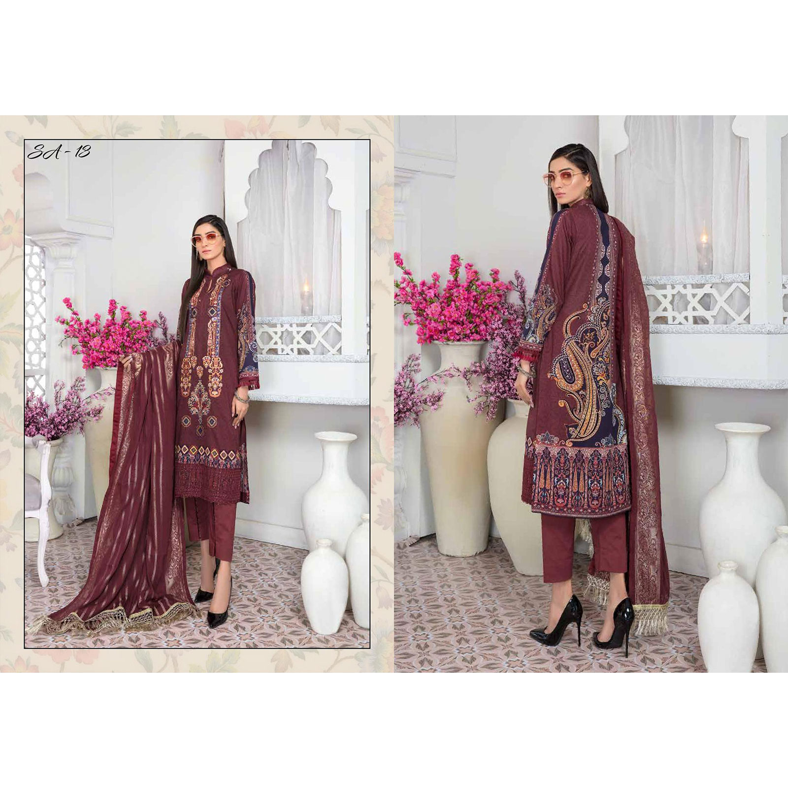 Define your personality in the most beautiful way with ethnic sets. Salwar Suits can change your looks. Stay dazzled with classy Embroidered Stylish Suits. You can change the personality you carry with ethnic wear and they will never let you down. These Salwar Suits are made from cotton fabric to provide you comfort all day long. This Suit featuring a straight style with Full sleeves, round embroidered neckline.