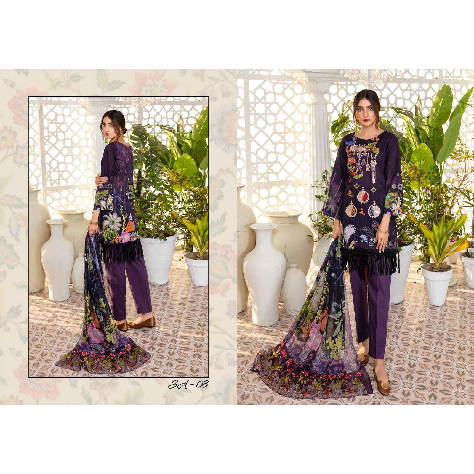 Zara Ali Spring Summer Lawn Collection with Embroidered and digital Print Back & Sleeves