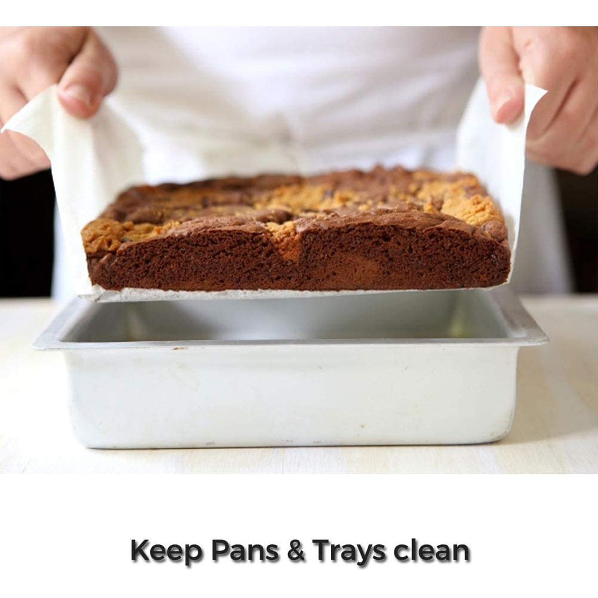 This baking paper good for fat free cooking. Food grade, no need for greasing, good for baking. Use it to line cake pans, cookie sheets, pizza stones and microwave ovens for non- stick cooking and baking. Makes clean up a snap. It has naturally high tensile strength and exceptional release-ability.