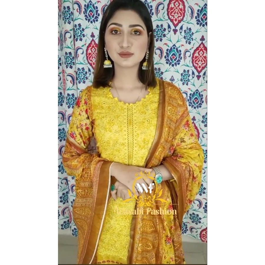 Original Pakistani Soft pure cotton Zari embroidery on neck,daman & sleeve portion Digital printed soft cotton dupatta