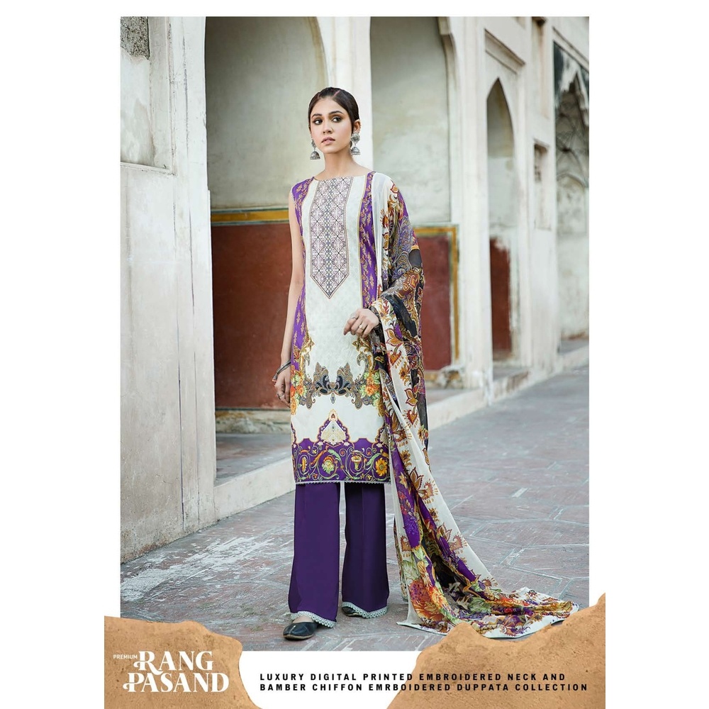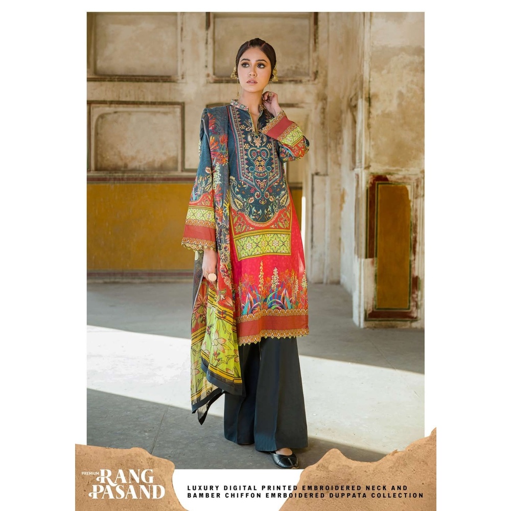 Rang Pasand Premium Vol - 1 Digital Print Embroidered with Bamber Chiffon Dupatta Three Piece 2021
