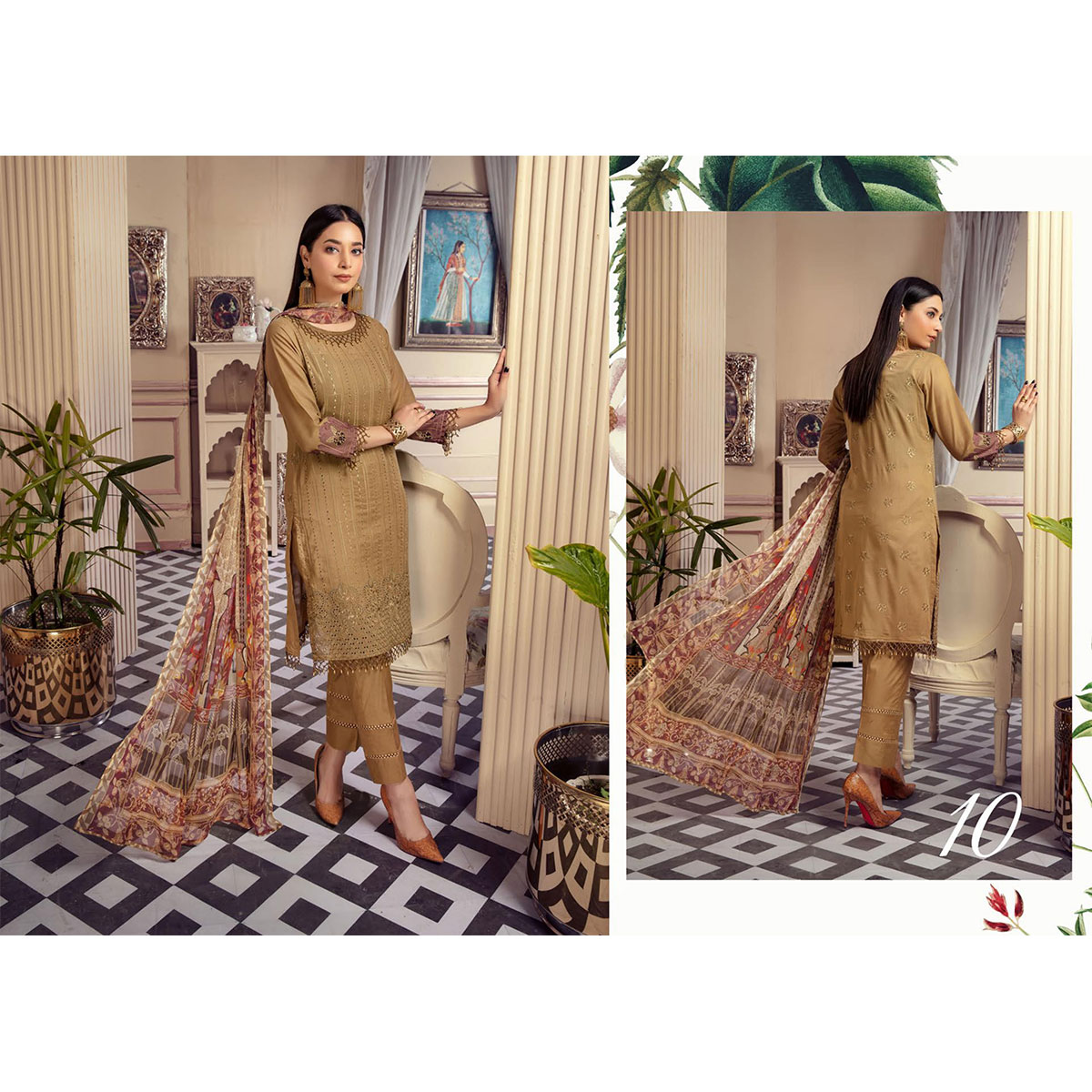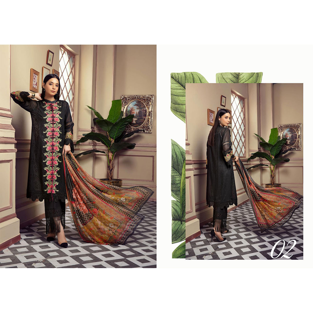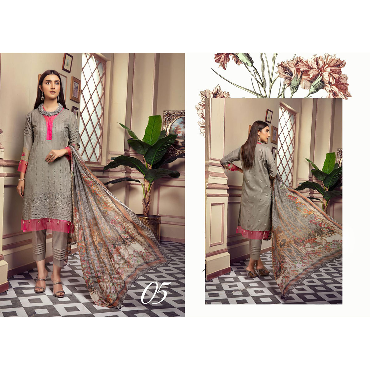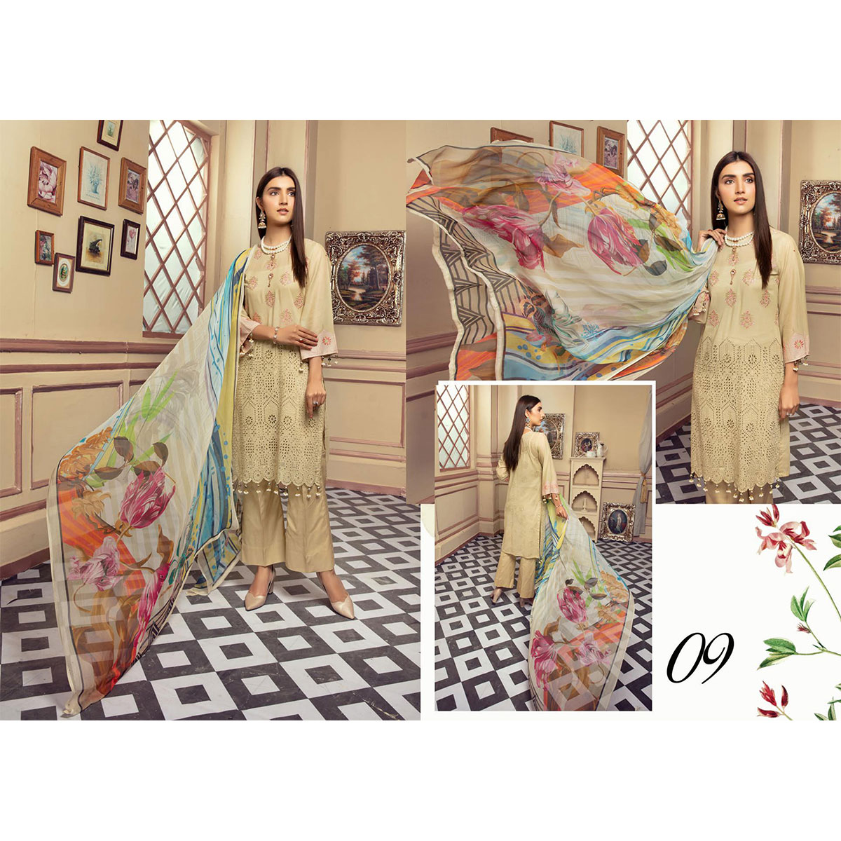 Blossom Embroidered Swiss Lawn With Printed Crinkle Dupatta By Riaz Arts – Per Set -10 Suit