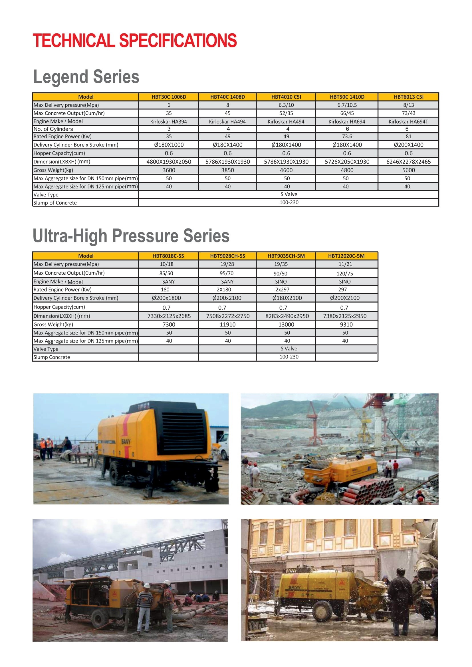 Discharge port, wear plate and cutting ring, concrete piston and delivery cylinder adopt Sino-Germany high-tech materials and advanced technology to greatly improve the product performance.