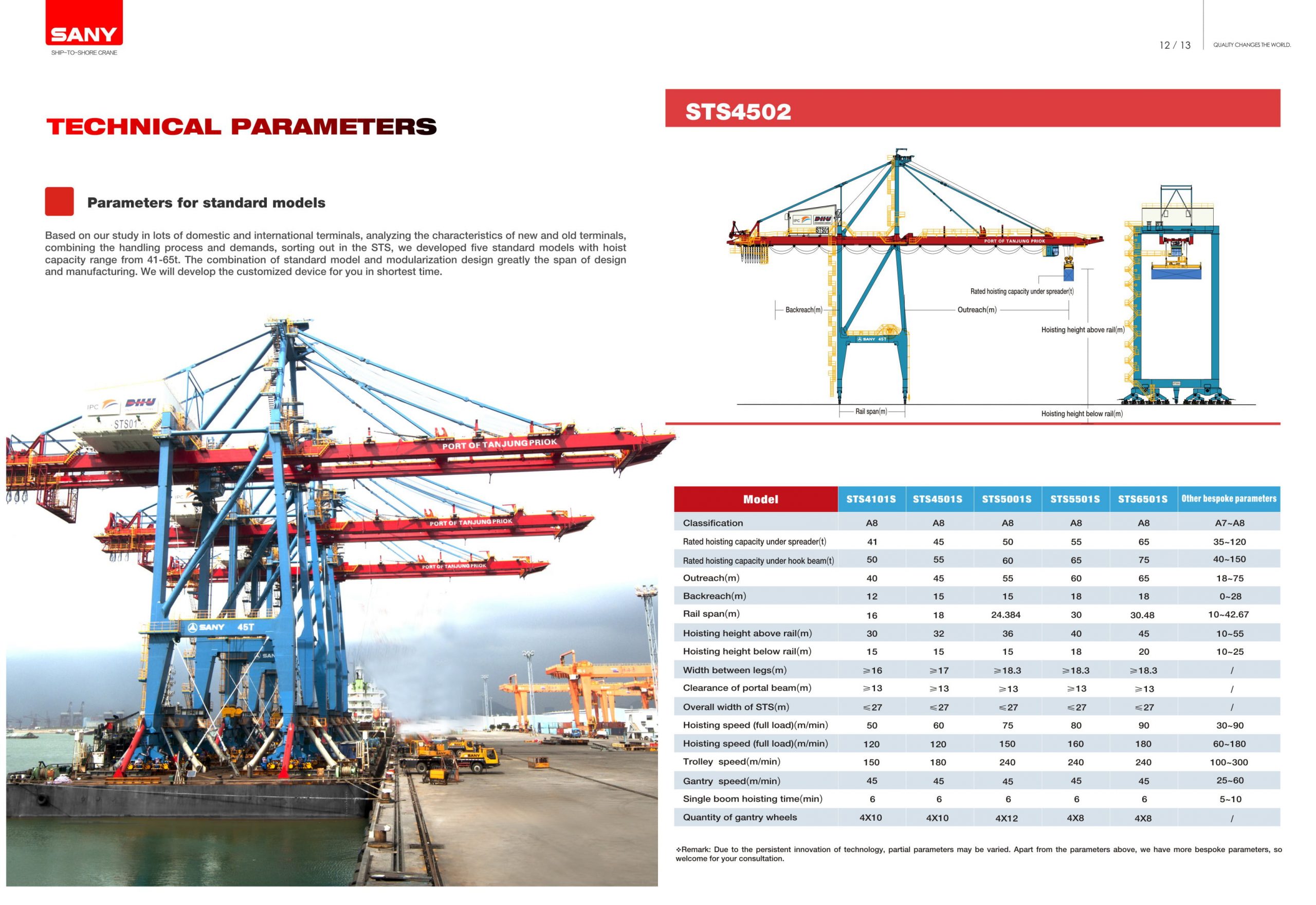 SANY STS is custom designed and built to meet your individual terminal requirements. Available with 8-wheel, 10-wheel and 12-wheel modular configurations, and a wide range of outreaches, hoisting capacity and span, SANY STS crane fits for workloads at different ports. High working efficiency and hearty security are assured with leading technologies.