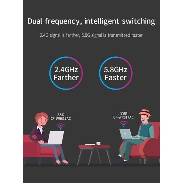 Comfast AC1200 Mbps 2.4G & 5.8G Fiber Wireless Router Product details: