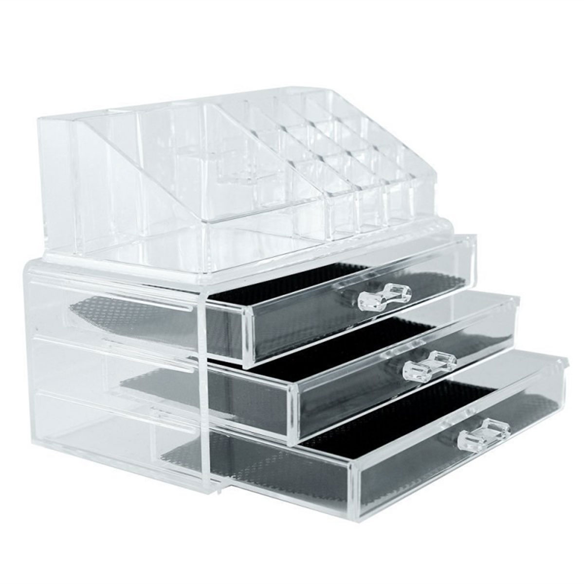 It perfectly organizes and stores your cosmetics, including lipsticks, nail polish, makeup brushes, eyebrow pencils, skin care products, makeup eggs, necklaces, rings and more. This unique product accommodates all of your cosmetics and accessories in a single organizer that takes up very little space. The cosmetic organizer saves you counter space, ensuring you won't be troubled by messy cosmetics scattered on your vanity table anymore!