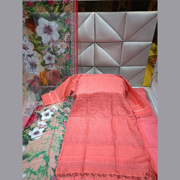 Cotton Body Embroidery with stone work three-piece