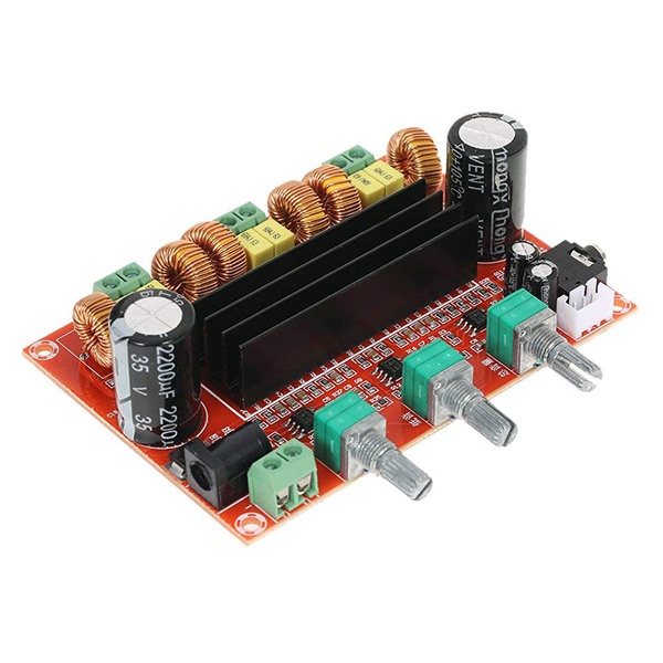 With good sound quality, high efficiency, strong power amplifier.50 W * 2 + 100 W with 2.1 channels (left channel/right and heavy bass track), high efficiency, and low heat. Adopt DC 12-24 V driver, wide voltage input. Users can easily adjust the volume. Just connect the power and speakers that you can enjoy pure digital music.