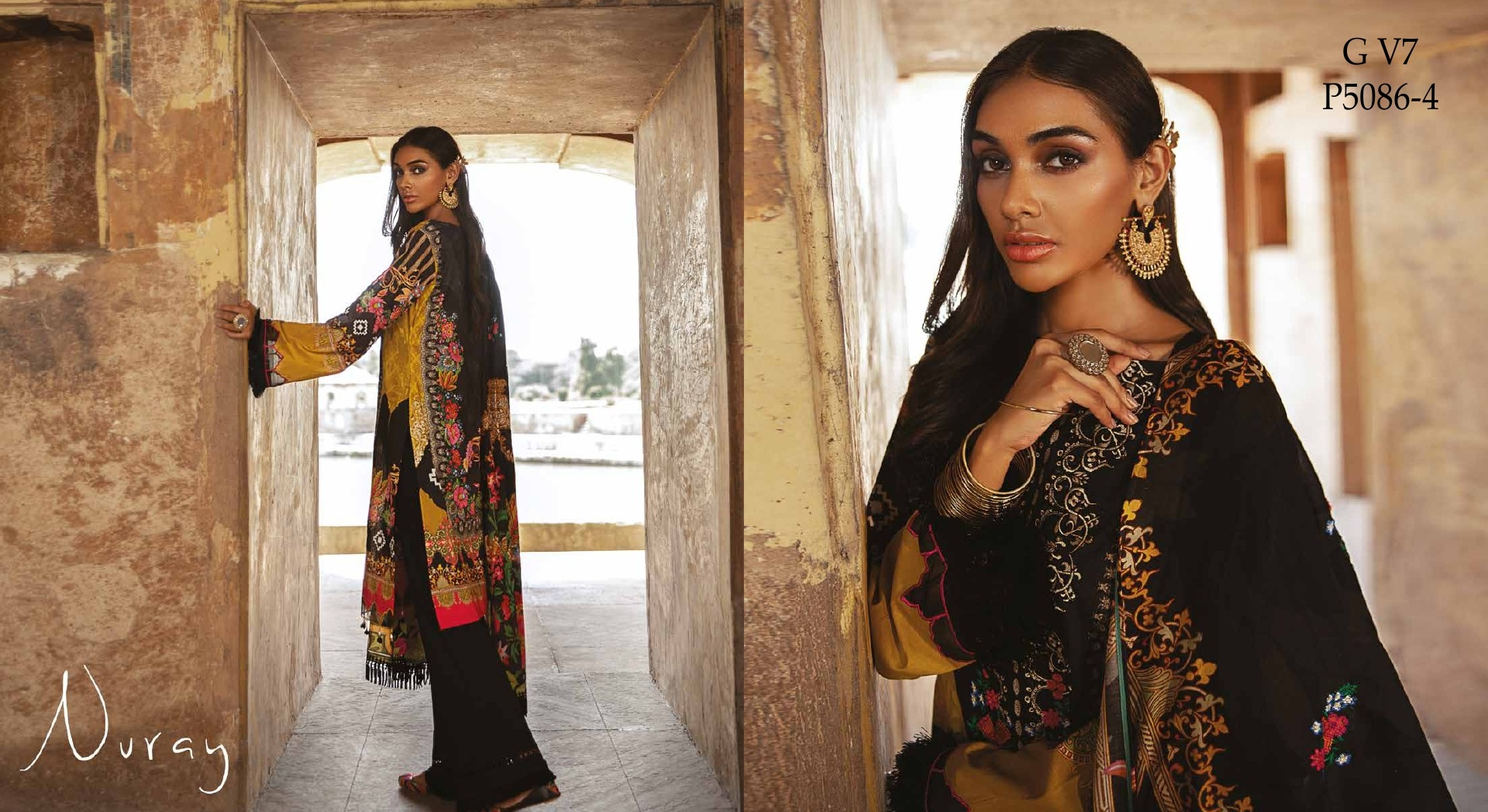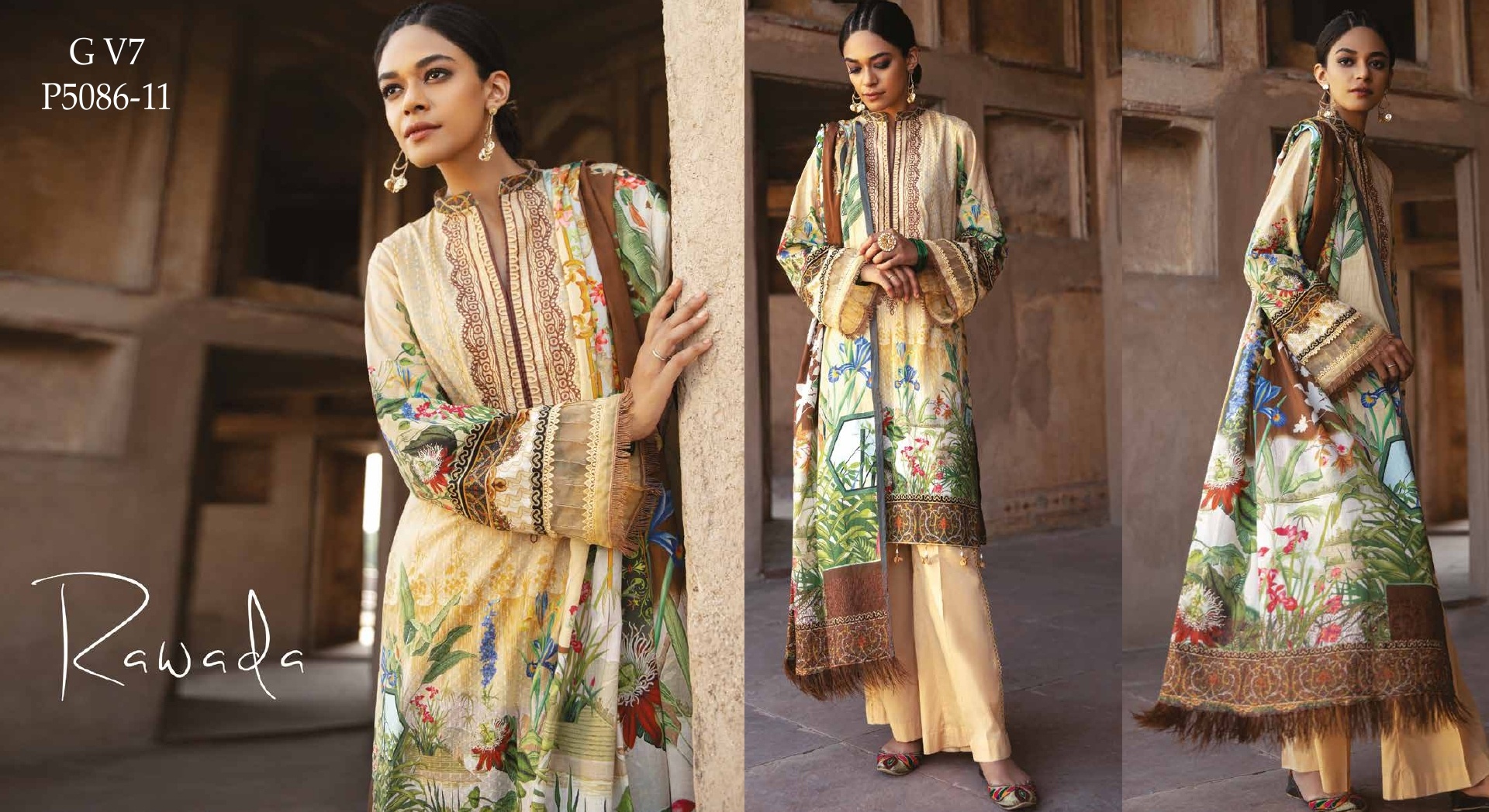 • Shawl: Digital Luxury Lawn Shawl with Embroidery on Pallo (2.5M).