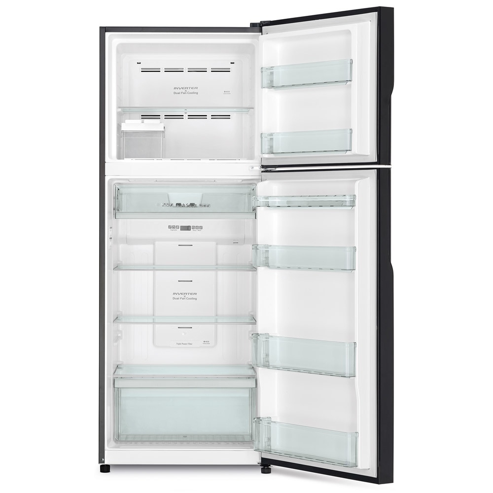 A Hitachi Refrigerator R-V460P8PB(KD)BBK consists of a thermally insulated compartment and a heat pump (mechanical, electronic or chemical) that transfers heat from its inside to its external environment so that its inside is cooled to a temperature below the room temperature. Refrigeration is an essential food storage
