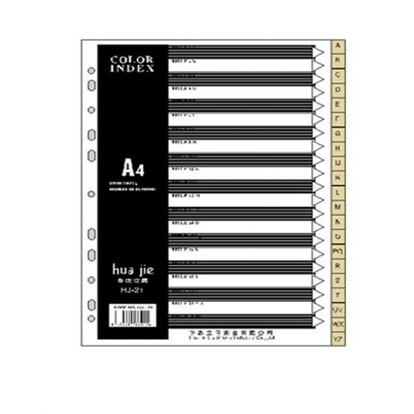 Huajie Index Paper, PP material, A4, A to Z, 11 Holes, 100gm