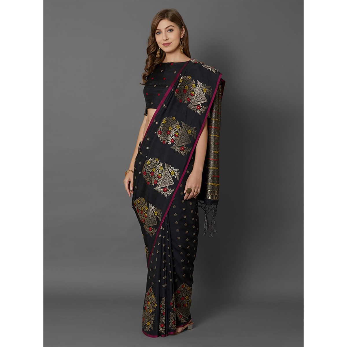 Latest Designed Luxury Exclusive Printed Katan Silk Saree (Black) With Blouse Piece For Women