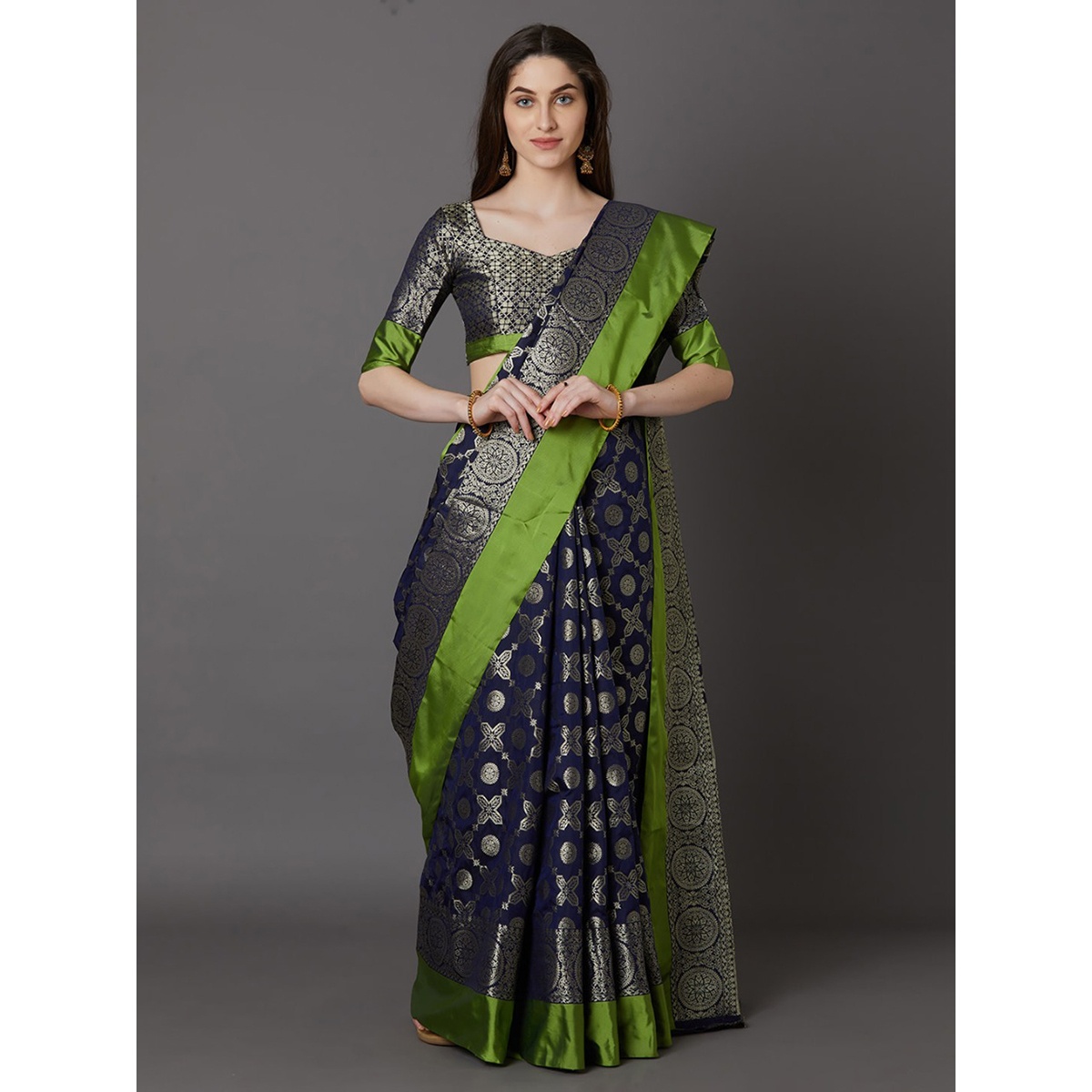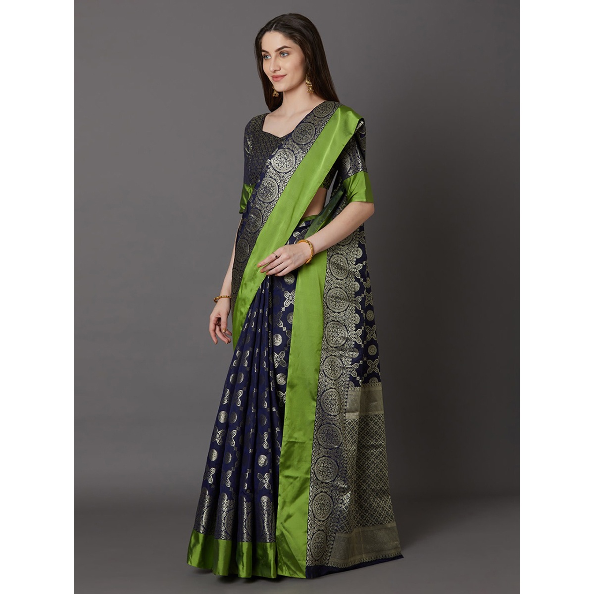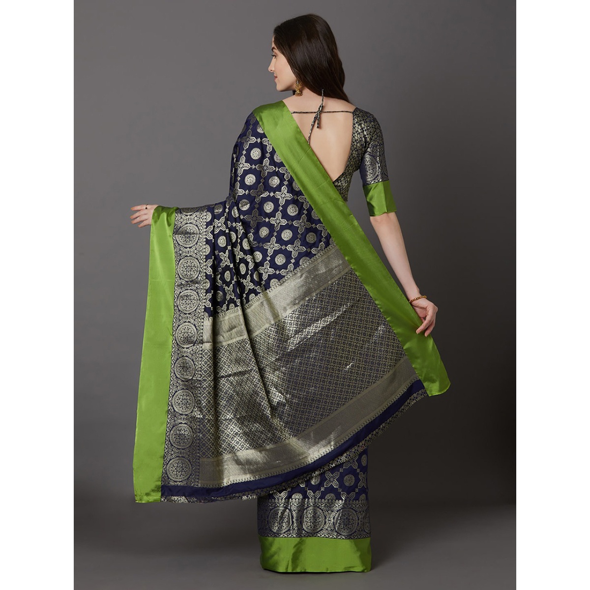 Latest Designed Luxury Exclusive Printed Katan Silk Saree (Silver & Green) With Blouse Piece For Women