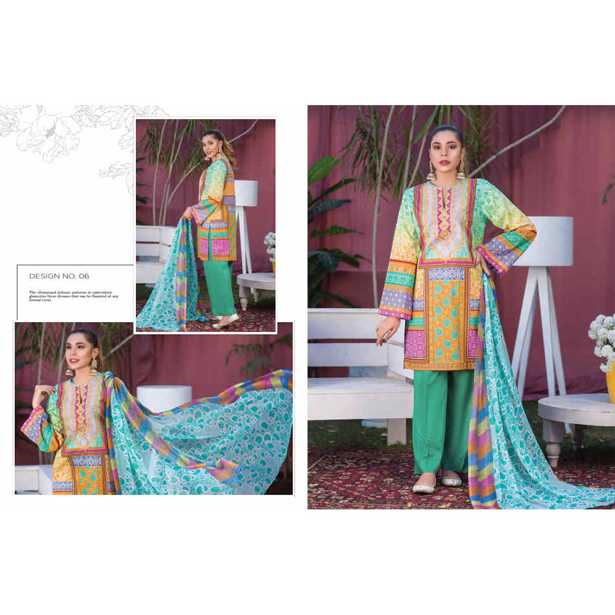 Pakistani lawns perfect for the young and smart person which can be worn for any occasion. This Product is made of good qualities fabrics. Women look very gorgeous in colorful dress, and so they love to wear and have a colorful dress for different social and cultural functions. It will keep you looking and feeling good all day.